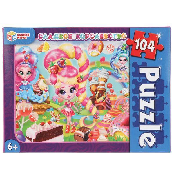 Аннотация: Сладкое королевство Пазлы классические в коробке. Пазл 104 деталей. Умные игры в кор.24шт