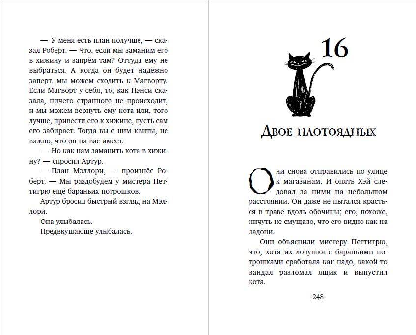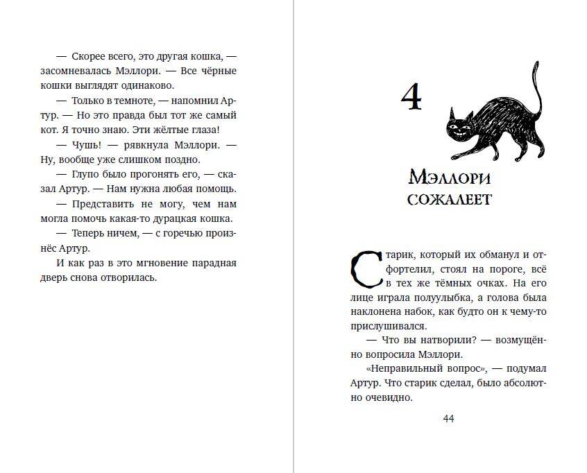 Если вы любите (или не любите) черных котов, самое время открыть эту книгу! История для тех, кто соскучился по мягкому юмору и приключениям неоднозначных героев! Коты верхом на лошадях не ездят. Дети неожиданно не проваливаются на сотню лет назад. Мэллори была в этом убеждена вплоть до некоторых событий. А в начале этой истории они с ее другом Артуром всего-то вышли поклянчить у соседей сладости в Хэллоуин... Джеймс Норклифф - популярный новозеландский писатель. Его романы для детей и подростков получили ряд премий, а сам автор стал нарасхват и то и дело выступает на писательских конференциях по всему миру. (Джеймс ужасный домосед и очень рад современным технологиям, благодаря которым можно побывать в другой стране, не выходя из комнаты.) Обложку нарисовала известная художница Анна Касаткина. Это непрямое продолжение книги «Месть зубной феи», их можно читать отдельно.| Издательство | ООО "Издательство "Эксмо" |