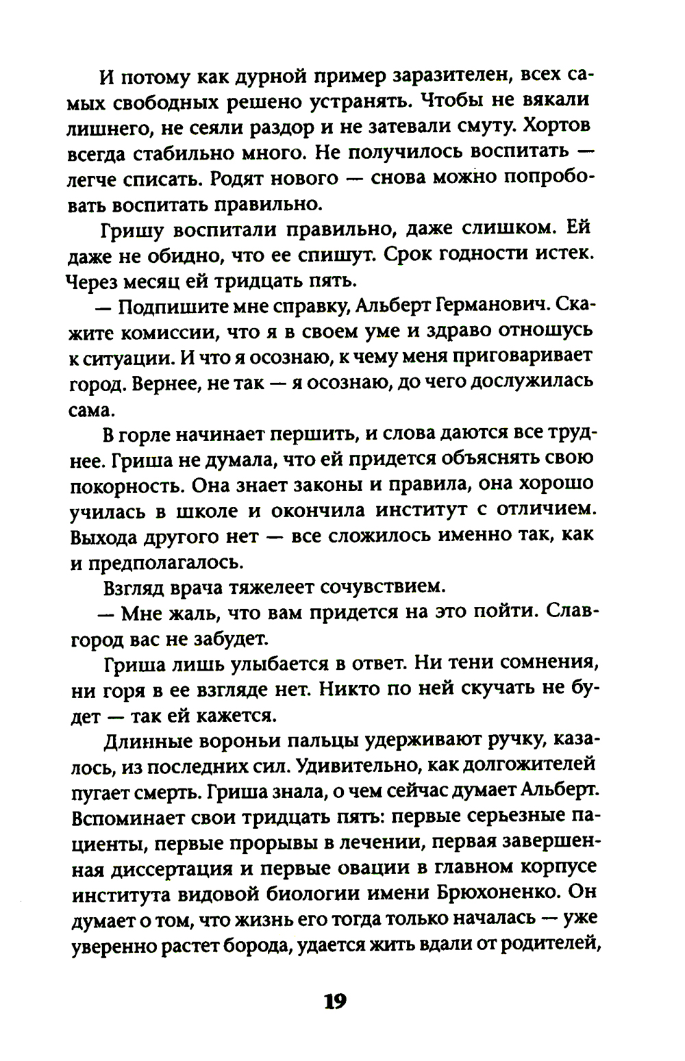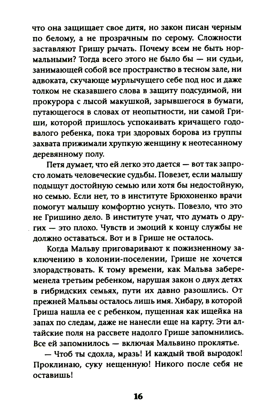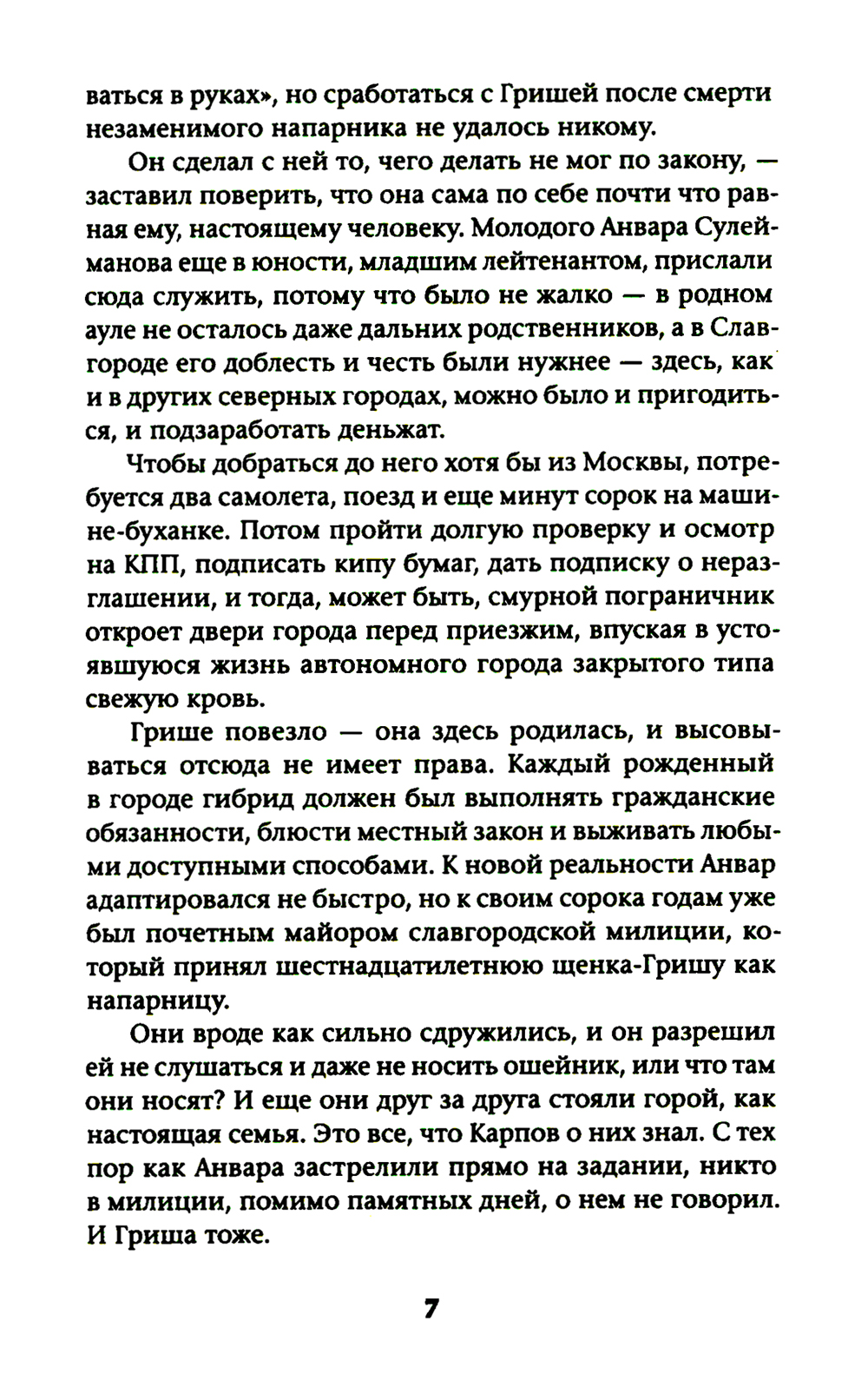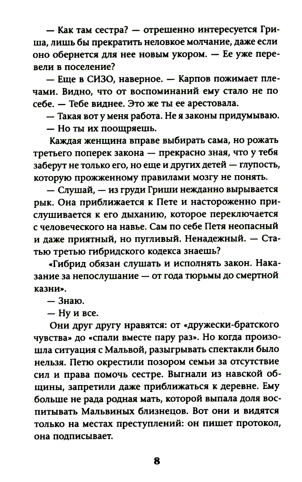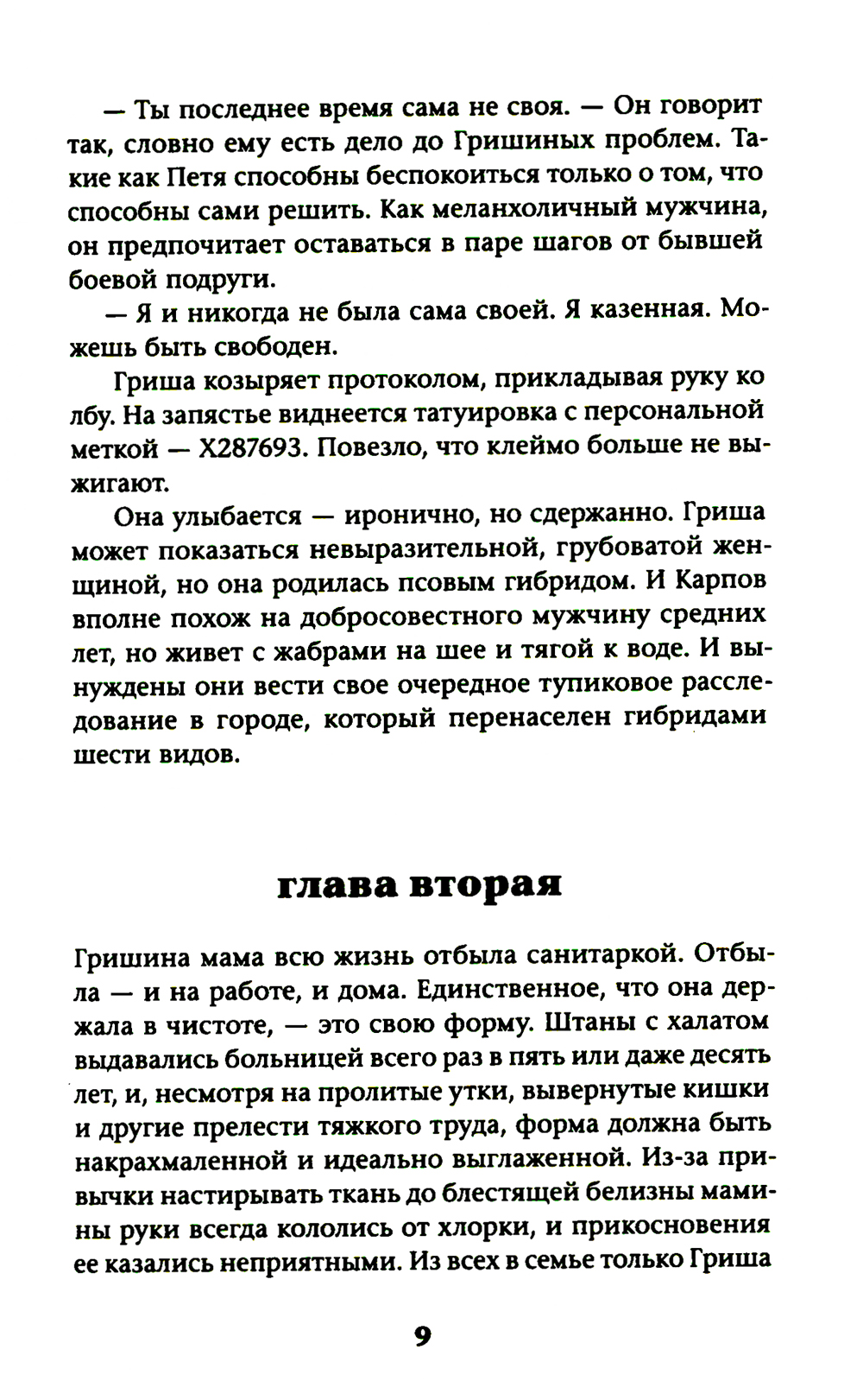 Закрытый город, где советские устои до сих пор живы, таит внутри границ большую тайну. Его населяют гибриды - не-люди, чья природа исходит от животного начала. Они различны по повадкам и по внешним особенностям, но главное - ими правят инстинкты. Гриша Рыкова провела всю жизнь на собачьей милицейской службе. Она отказалась стать матерью, и по закону ее ждет добровольная эвтаназия. Готовясь покорно принять свою судьбу, она знакомится с революционеркой Ильяной Зильберман, которая не привыкла сдаваться так просто. Теперь целью Ильяны становится спасение Гриши от смерти, которой нельзя избежать - в городе, о котором нельзя говорить.| Издательство | ИД Мещерякова |