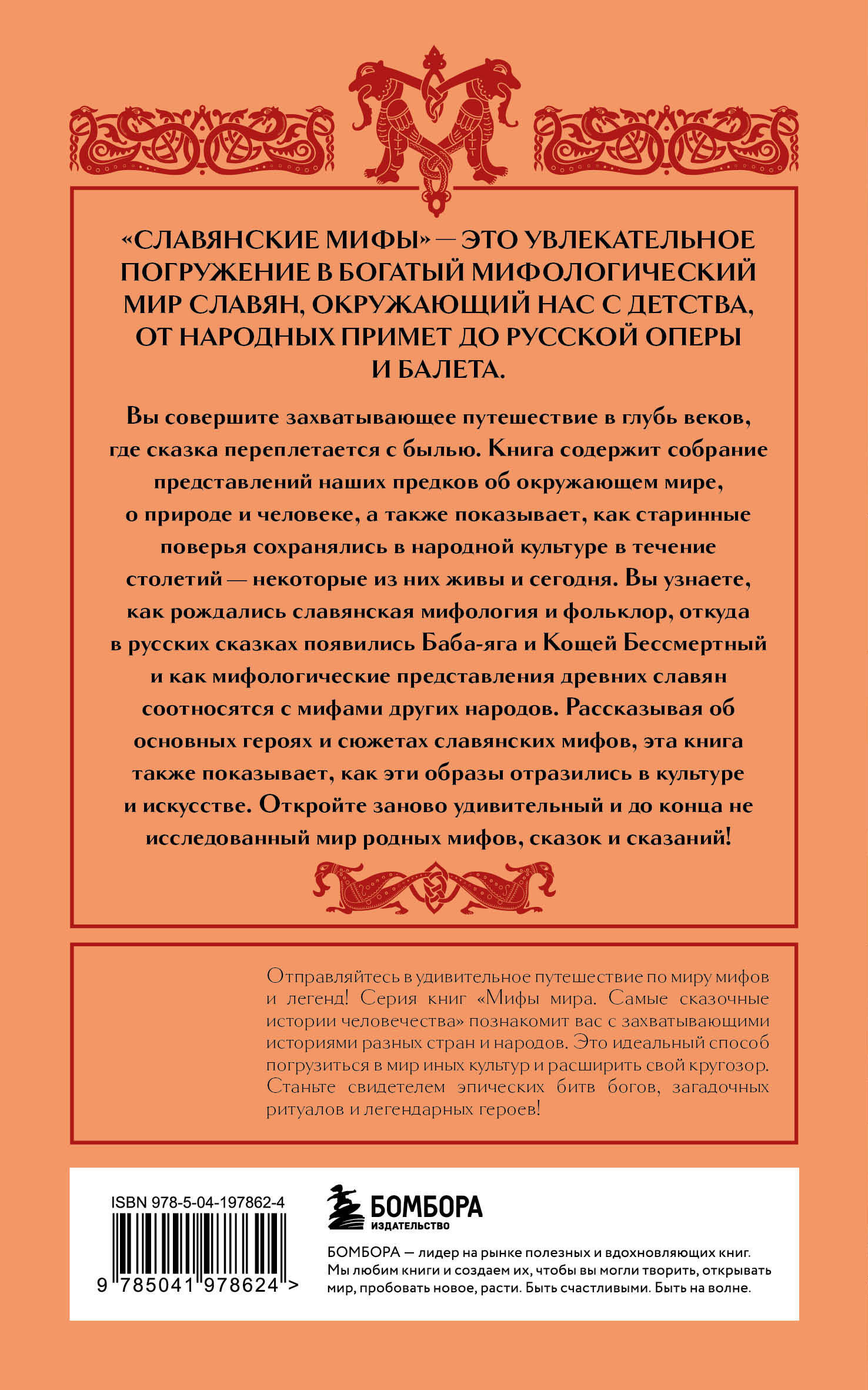 «Славянские мифы» - это удивительное путешествие по миру славянской мифологии, который с первых страниц увлечет вас своими тайнами и загадками, скрытыми в глубинах времени. Из этой книги вы узнаете, как наши предки представляли себе устройство мира, кем были их главные божества, как им поклонялись, каковы их основные черты и атрибуты. Вы познакомитесь с такими божествами, как Перун, Сварог и Велес, Ярило, Мокошь и Лихо, с нечистью, которая нашла свое воплощение в любимых с детства сказках: Бабой Ягой, Кощеем Бессмертным, Дедом Морозом и Водяным. Вы узнаете об обычаях и традициях, которые зародились в древности, но живы и сегодня - как, например, установка новогодней елки или традиция прыгать через костер на Ивана Купалу. Иллюстрации и QR-коды, ведущие на страницы музеев и энциклопедий, дополнят путешествие в мир славянских мифов и легенд! Из книги «Славянские мифы» вы узнаете о формировании эпоса, о появлении мифологических образов и приемов в русских былинах, например, о возможном происхождении богатырей от древнеславянских божеств. Помимо этого, книга содержит множество интересных фактов о том, как мифологические образы и сюжеты отражаются в искусстве, быте и культуре, что делает эту книгу поистине уникальной. Отправляйтесь в удивительное путешествие по миру мифов и легенд! Серия книг «Мифы мира. Самые сказочные истории человечества» познакомит вас с захватывающими историями разных стран и народов. Это идеальный способ погрузиться в мир иных культур и расширить свой кругозор. Станьте свидетелем эпических битв богов, загадочных ритуалов и легендарных героев!| Издательство | ООО "Издательство "Эксмо" |