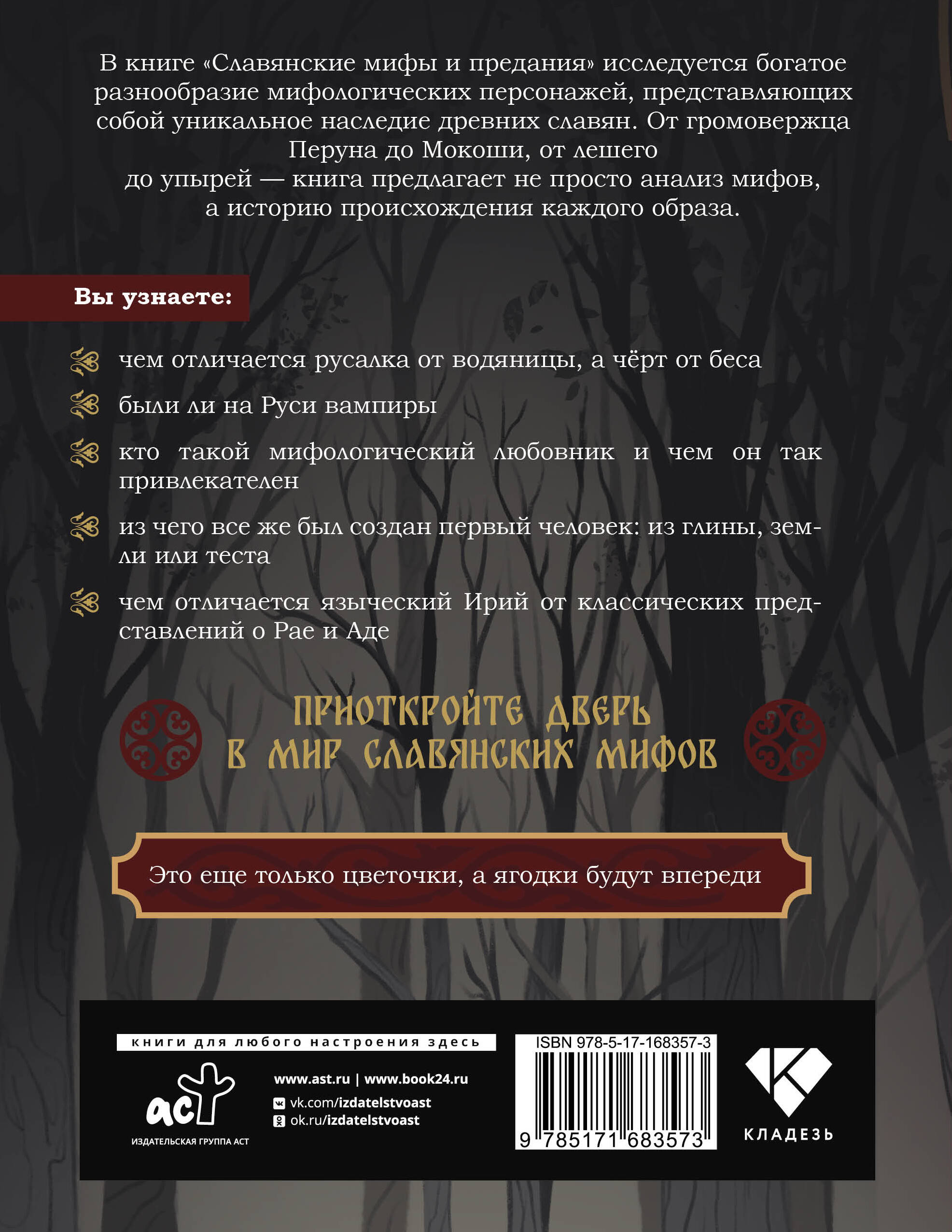 В книге "Славянские мифы и предания" исследуется богатое разнообразие мифологических персонажей, представляющих собой уникальное наследие древних славян. От громовержца Перуна до Мокоши, от Лешего до Упырей - книга предлагает не просто анализ мифов, а историю происхождения каждого образа. Вы узнаете: • Чем отличается русалка от водяницы, а чёрт от беса? • Были ли на Руси вампиры? • Кто такой мифологический любовник и чем он так привлекателен? • Из чего все же был создан первый человек: из глины, земли или теста? • Чем отличается языческий Ирий от классических представлений о Рае и Аде? Приоткройте дверь в мир славянских мифов!| Издательство | Издательство "АСТ" |