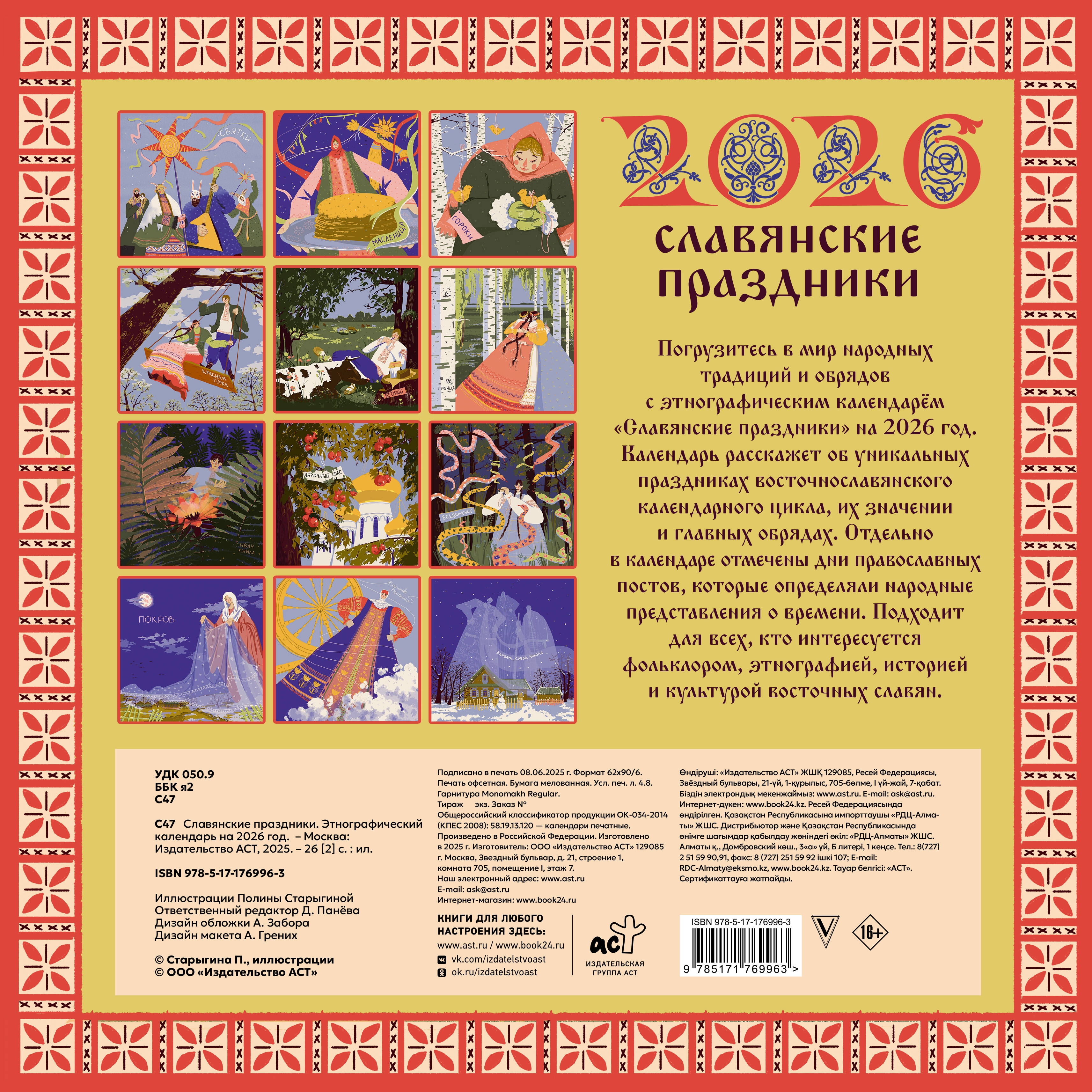 Погрузитесь в мир народных традиций и обрядов с этнографическим календарём "Славянские праздники" на 2026 год. Календарь расскажет об уникальных праздниках восточнославянского календарного цикла, их значении и главных обрядах. Отдельно в календаре отмечены дни православных постов, которые определяли народные представления о времени. Подходит для всех, кто интересуется фольклором, этнографией, историей и культурой восточных славян.| Издательство | Издательство "АСТ" |