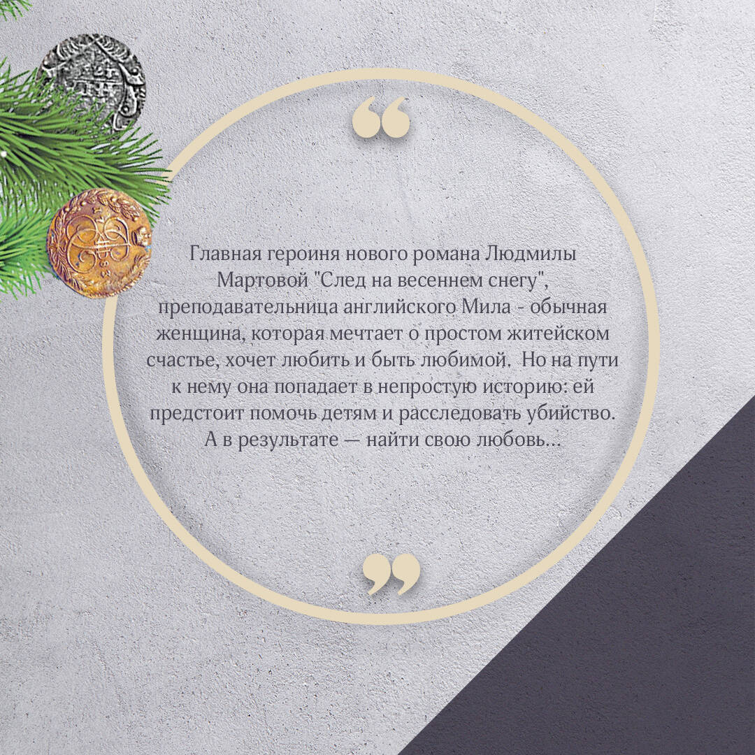 Главная героиня нового романа Людмилы Мартовой «След на весеннем снегу», преподавательница английского Мила - обычная женщина, которая мечтает о простом житейском счастье, хочет любить и быть любимой. Но на пути к нему она попадает в непростую историю: ей предстоит помочь детям и расследовать убийство. А в результате - найти свою любовь…| Издательство | ООО "Издательство "Эксмо" |