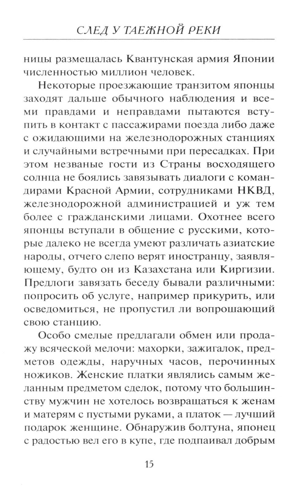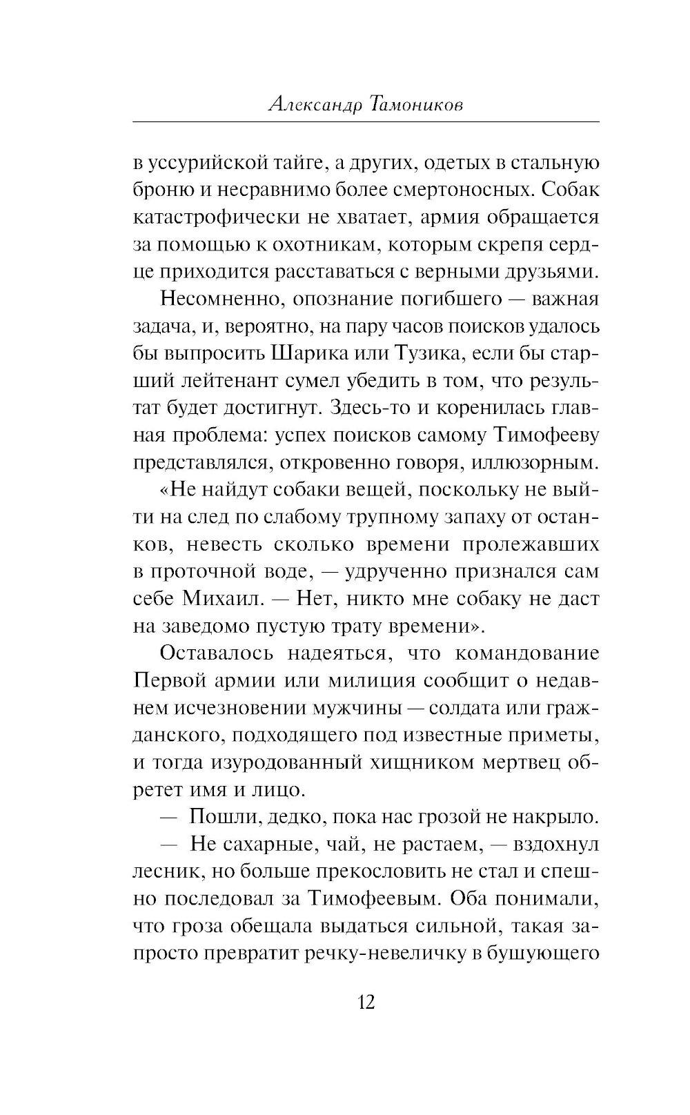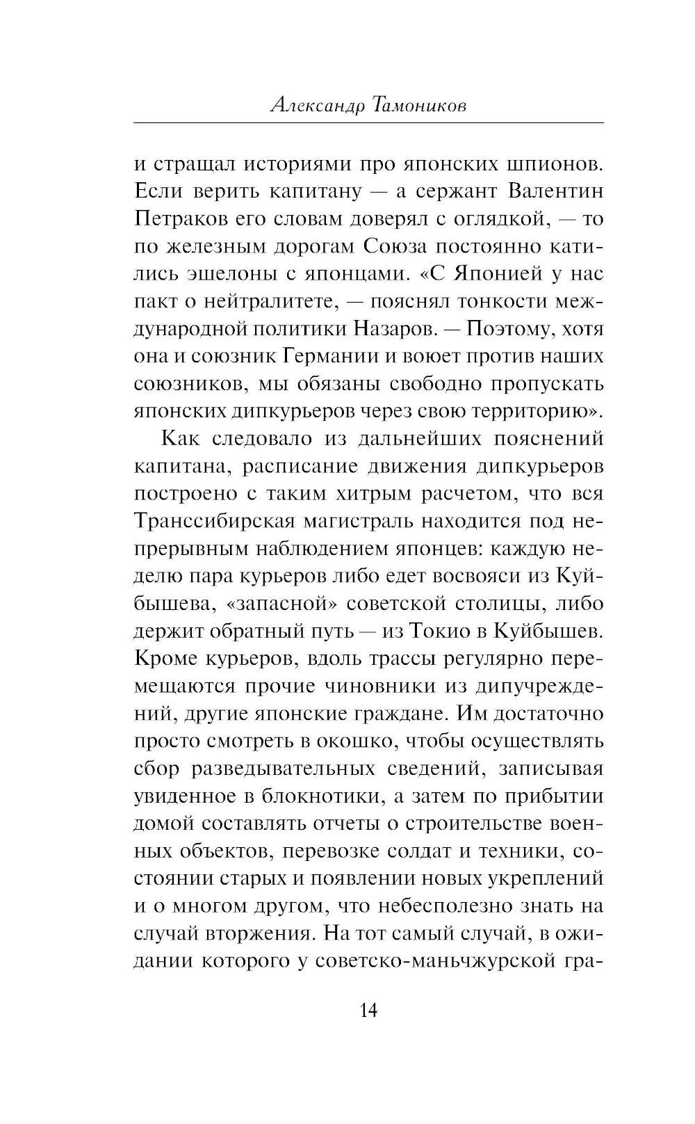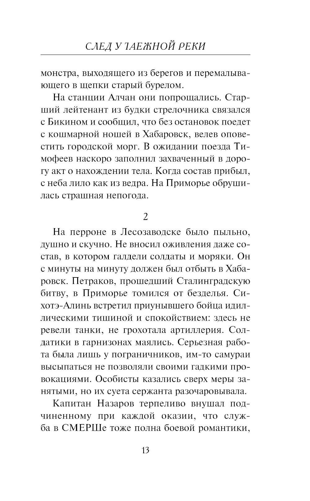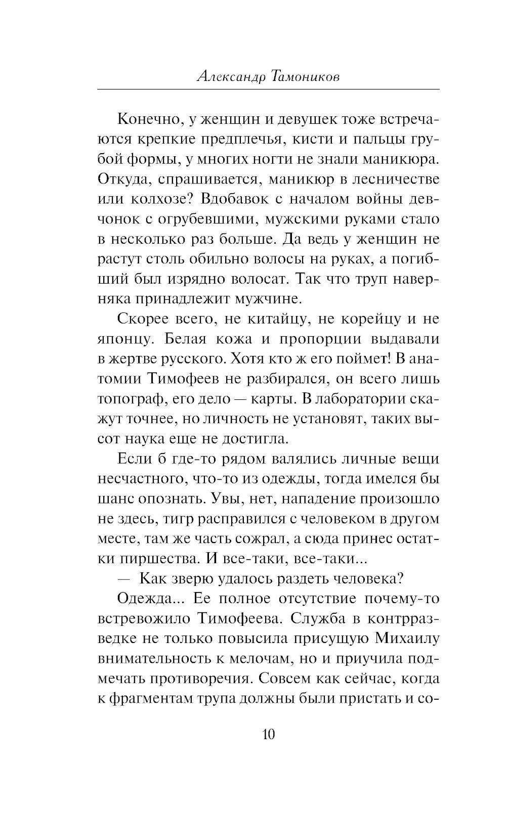 1943 год. Приморье. В таежной реке найдены фрагменты человеческого тела. Похоже, таким образом тигр припрятал в холодной воде свою добычу. Но если это тигр, то почему труп без одежды?.. Спустя несколько дней капитан СМЕРШа Николай Назаров задерживает на станции подозрительного красноармейца. Со слов бойца, он отстал от эшелона, идущего в направлении Хабаровска. Именно там недавно назначенный командующим Дальневосточным фронтом генерал Пуркаев формирует свой штаб. Среди документов задержанного обнаружено письмо на бумаге японского производства. Оперативное чутье подсказывает Назарову, что неопознанный труп в реке и этот «дезертир» - звенья хорошо спланированной японцами операции по устранению советского генерала...| Издательство | Эксмо |