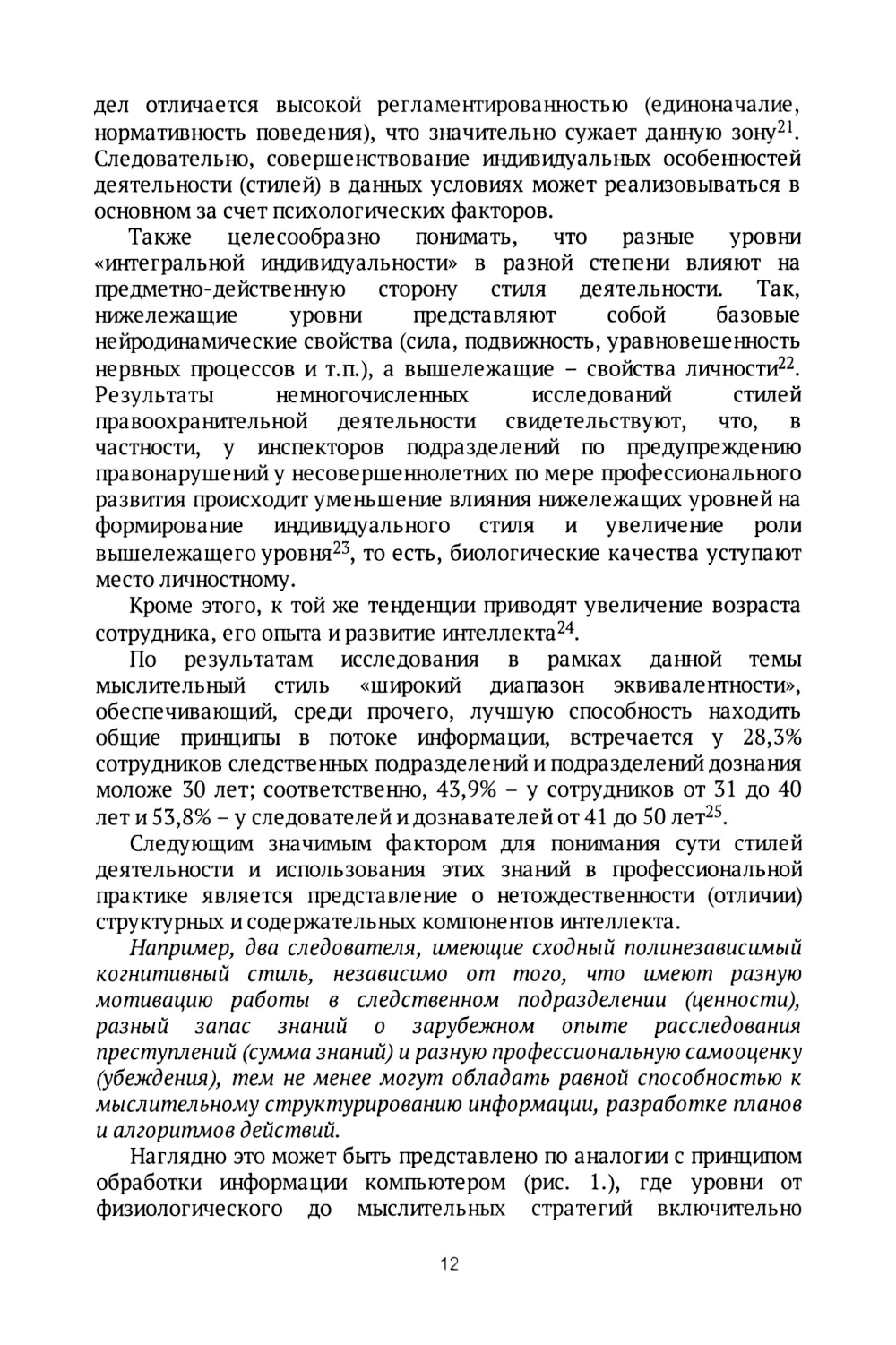 Пособие посвящено проблеме повышения профессиональной эффективности следователей и дознавателей органов внутренних дел с использованием стилевого подхода когнитивного направления психологической науки. Подготовлено на основе анализа практики расследования преступлений, экспертного мнения опытных следователей и дознавателей, диссертационных исследований по сходной тематике и специальной литературы. Пособие представляет собой систематизированный подход к изучению технологии расследования уголовных дел с учетом индивидуальных стилей работы следователей и дознавателей. В пособии раскрыты различные традиционные и нетрадиционные методы работы при расследовании уголовных дел. Автор предлагает индивидуальный подход к расследованию уголовных дел и анализирует уникальные методы работы, которые могут быть присущи каждому сотруднику правоохранительных органов. Книга включает в себя описания практических методов, которые могут быть полезны студентам и практикующим сотрудникам правоохранительных органов, а также всем, кто интересуется изучением технологий расследования уголовных дел. Для следователей и дознавателей, научных работников, преподавателей, аспирантов и студентов юридических вузов.| Издательство | Проспект |