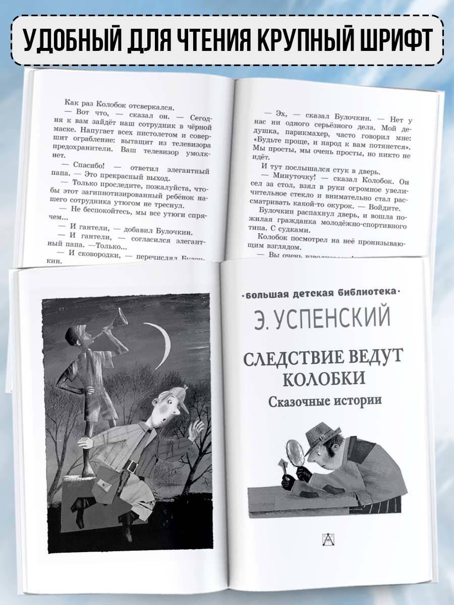 Сыщик Колобок получил своё прозвище в молодости, когда от бабушки ушёл и от дедушки ушёл, немного бродяжничал, искал призвание, нашёл, окончил школу милиции в Тамбове и стал работать в детском парке на Красной Пресне детективом. Много добрых дел совершили Колобок и его напарник Булочкин, сколько найдено котов, собак и детей! Сколько поймано преступных и полупреступных элементов! Колобку ещё далеко до пенсии, ему некогда предаваться воспоминаниям о своих подвигах, а вот писатель Эдуард Успенский с удовольствием записал шесть историй из биографии знаменитого сыщика.| Издательство | ИЗДАТЕЛЬСТВО "АСТ" |
