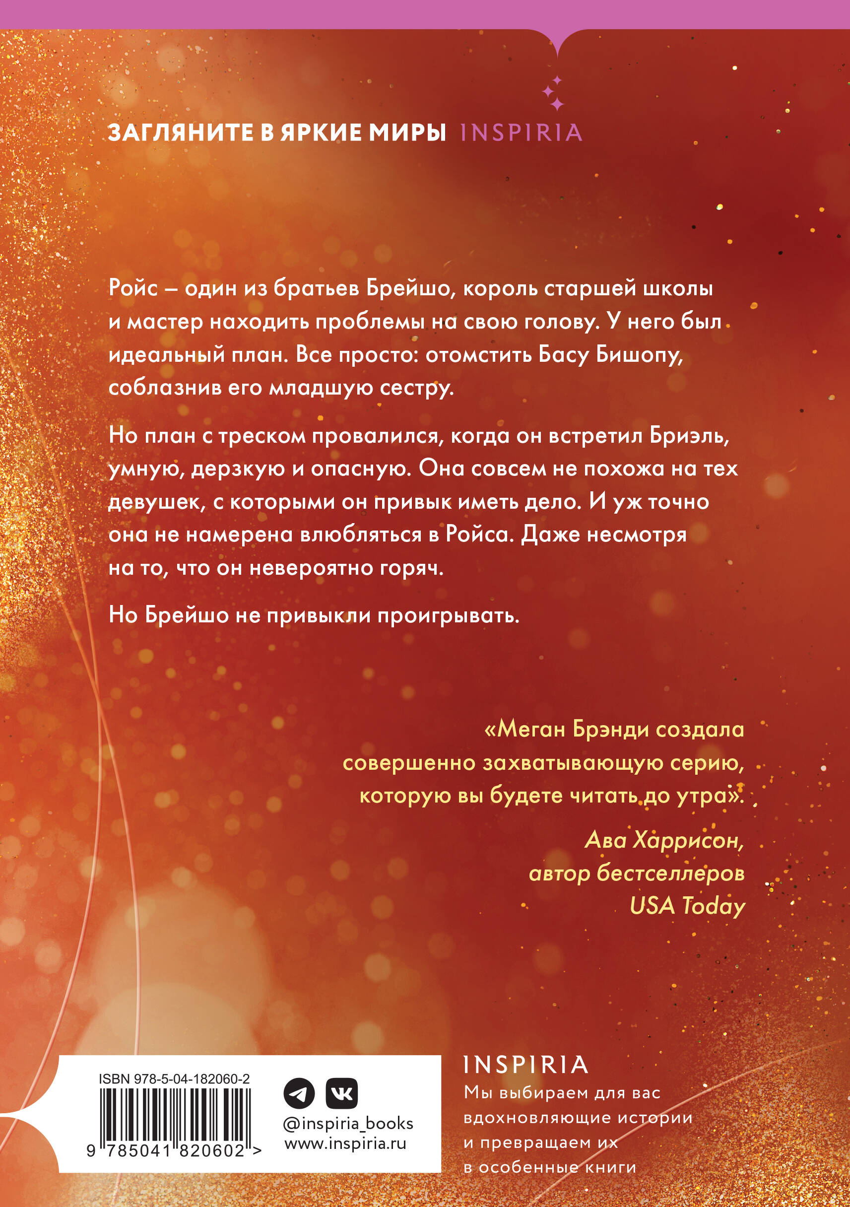 Бестселлер Amazon! «Сломай меня» - заключительная книга в серии о братьях Брейшо. История Мэддока и Рэйвен закончена, но приключения братьев продолжаются! Героями пятой части станут Ройс и Бриэль. Ройс - один из братьев Брейшо, король старшей школы и мастер находить проблемы на свою голову. У него был идеальный план. Все просто: отомстить Басу Бишопу, соблазнив его младшую сестру. Но план с треском провалился, когда он встретил Бриэль, умную, дерзкую и опасную. Она совсем не похожа на тех девушек, с которыми он привык иметь дело. И уж точно она не намерена влюбляться в Ройса. Даже несмотря на то, что он невероятно горяч. Но Брейшо не привыкли проигрывать. Об авторе Меган Брэнди - автор бестселлеров USA Today и Wall Street Journal. Она помешана на печенюшках, обожает музыкальные автоматы и иногда говорит текстами из песен. Ее лучший друг - кофе, а слова - состояние души.| Издательство | ООО "Издательство "Эксмо" |
