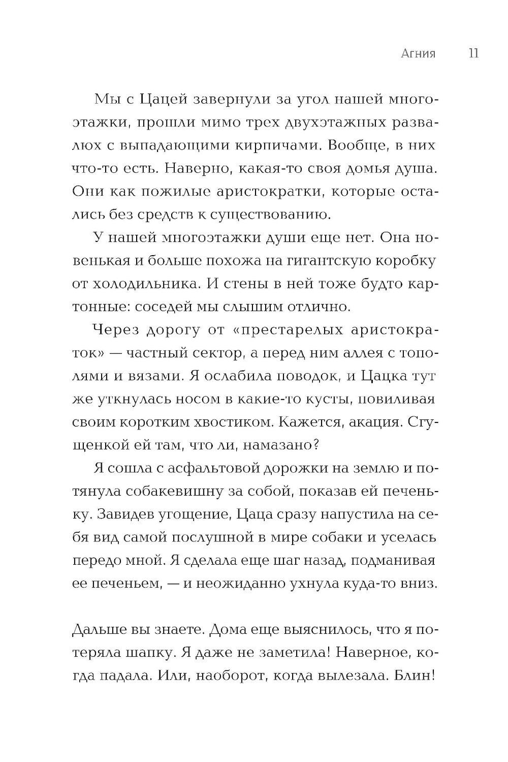 Прогулка с собакой Цацей закончилась для старшеклассницы Агнии большой бедой - собаку сбил автомобиль, вылетевший на красный свет. Цаце уже, к сожалению, ничем не помочь, но судьба дала Агнии шанс спасти другую собаку-бультерьера Сая, которого привели усыплять нерадивые хозяева. В этих невеселых обстоятельствах Агния знакомится с Владом - студентом медицинского университета. Влад кажется спокойным и уверенным в своих силах, но и в его жизни есть проблемы, о которых он предпочитает не рассказывать даже друзьям. В один из дней, когда всё летит кувырком и неудача следует за неудачей, Агния и Влад убеждаются, что нет ничего невозможного, и помощь приходит, откуда ее совсем не ждешь. Ирина Бутенко - поэт, прозаик и журналист. В старших классах она оказалась перед нелегким выбором - учиться на ветеринара или на филолога. Любовь к текстам победила, и Ирина поступила на журфак. Но привязанность к животным продолжает жить в ее повестях, даря читателю искренность, в которой не приходится сомневаться. Для среднего и старшего школьного возраста. Автор обложки Анна Панкратова.| Издательство | Пять четвертей |
