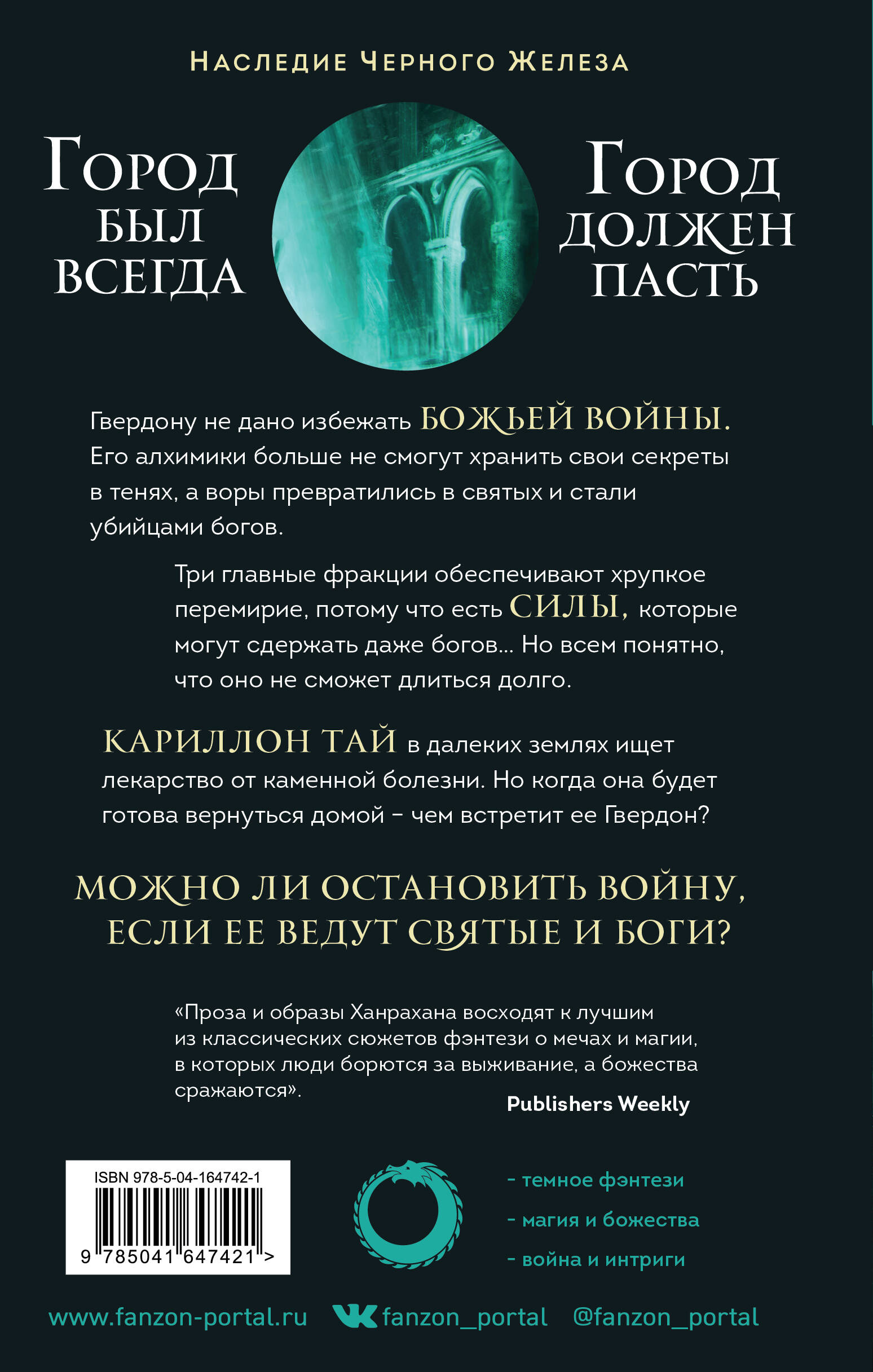 Войдите в город драконов и тьмы… Гвердону не дано избежать Божьей Войны. Его воры превратились в святых, стали убийцами богов, его алхимики больше не смогут хранить свои секреты в тенях. Три главные фракции держат хрупкое перемирие, потому что есть силы, которые могут сдержать даже богов… Но всем понятно, что оно не сможет длиться долго. Карильон Тай в далеких землях ищет лекарство от каменной болезни. Но когда она будет готова вернуться домой - чем встретит ее Гвердон? Можно ли остановить войну, если ее ведут святые и боги? «Проза и образы Ханрахана восходят к лучшим из классических сюжетов фэнтези о мечах и магии, в которых люди борются за выживание, а божества сражаются». - Publishers Weekly «Я куплю любой роман, который когда-либо напишет Гарет Ханрахан». - Fantasy Inn «Это фэнтези, бросающее вызов жанру в самом лучшем его проявлении. Абсолютно потрясающий дебют. Безумно изобретательный и глубоко извращенный. Я в восторге! Очень рекомендую». - Майкл Р. Флетчер «Гердон - город, который полон истории, ужасов и скрытых тайн, а уверенный стиль Ханрахана приятно напоминает Чайну Мьевиля». - Николас Имс «Захватывающая история, которая прекрасно сочетается с ее пленительным, мрачным и изобретательным окружением». - Джеймс Айлингтон| Издательство | Эксмо |