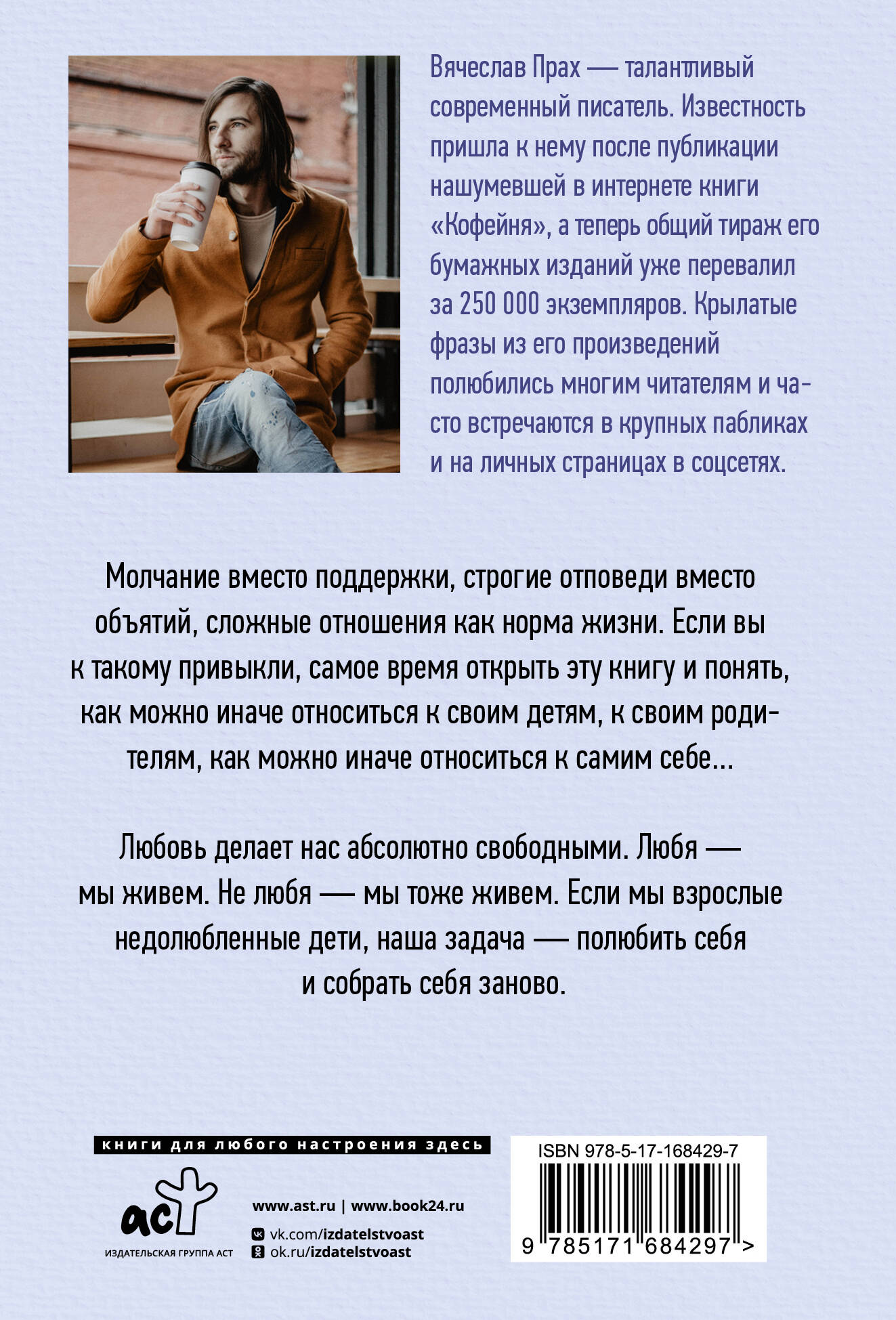 - Сентиментальная проза. - Одна из самых цитируемых книг Вячеслава Праха после знаменитой «Кофейни». - Послание автора дочери, сыну и своим читателям. - Книга о том, что наш путь по жизни закладывается еще в детстве и о том, как важно помнить об этом, воспитывая собственных детей. - Темы, которые принято обходить вниманием в российской семье: личная значимость, границы в отношениях, ответственность не только детей, но и родителей. - Серия «Кофейня. Бестселлеры Вячеслава Праха»: лучшие книги автора в едином оформлении и удобном карманном формате.| Издательство | Издательство "АСТ" |