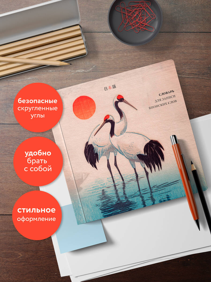 Аннотация: Словарь для записи японских слов (15х15 см) (Акварельные цапли)