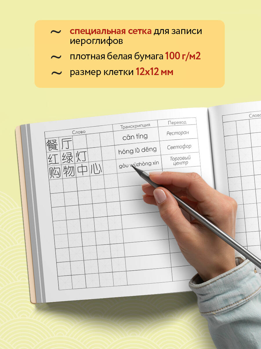 Серия словарей для записи азиатских слов служит полезным помощником при изучении восточных языков. Специальная сетка для записи иероглифов поможет аккуратно записать слово в ячейках первой колонки; рядом предусмотрены колонки для транскрипции и перевода. Повторяйте новую лексику, закрывая нужное рукой или листом бумаги.| Издательство | ООО "Издательство "Эксмо" |
