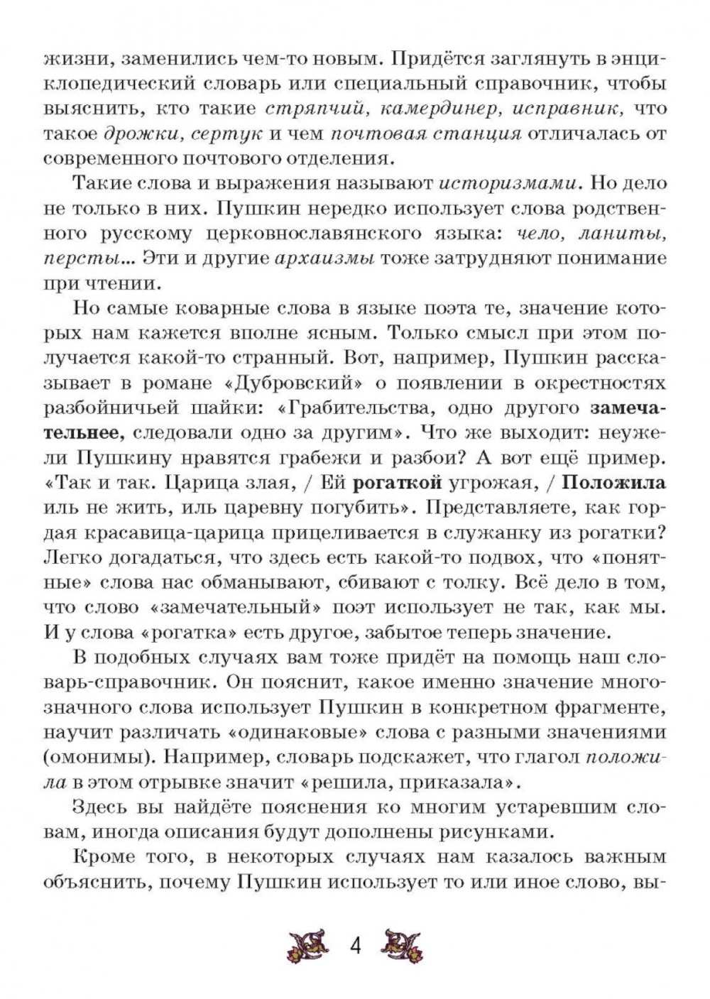 «На языке, тебе невнятном, / Стихи прощальные пишу». Так некогда Пушкин обращался к очаровательной иностранке. Прошло двести лет, и, увы - сегодня эти слова поэт мог бы адресовать своим юным соотечественникам. Простой и ясный пушкинский язык всё-таки содержит немало иносказаний, мифологических имён и прочих «поэтизмов», рассчитанных на читателя с большим культурным запасом. За два с лишним века многие слова вышли из обращения или приобрели иное значение. Сам предметный мир вокруг нас стал совсем иным. Вот почему без пояснений и комментариев многим школьникам сегодня трудно расслышать речь великого поэта. Словарь-справочник поможет сделать «невнятное» - понятным, чтобы слово Пушкина в полной мере открылось юному читателю, достигло и слуха, и сердца. Иллюстрированный словарь-справочник поможет учащимся при чтении произведений поэта, включённых в школьную программу, и даст ёмкую и необходимую информацию в трудных случаях: - прокомментирует историзмы (например, «стряпчий», «камердинер», «исправник» и др.); - объяснит архаизмы (например, «чело», «ланиты», «персты» и др.); - обратит внимание на самые коварные слова в языке поэта - те, значение которых нам кажется вполне ясным (например, рогатка); - пояснит, какое именно значение многозначного слова использует Пушкин в конкретном фрагменте; - научит различать «одинаковые» слова с разными значениями (омонимы); - в рубрике «Комментарии составителей» объяснит, почему Пушкин использует то или иное слово, выражение, какой оттенок смысла они вносят в целое произведение; - в «Исторических справках» более развёрнуто расскажет о некоторых особенностях культуры, быта, нравов пушкинской эпохи; - словарь-справочник включает только те слова, которые могут вызвать затруднение у сегодняшнего юного читателя и из тех произведений, которые входят в основную школьную программу по литературе. Описания предметного мира дополнены исторически выверенными иллюстрациями. Словарь-справочник адресован учащимся общеобразовательных школ, учителям, родителям.| Издательство | ИД Вахромеева |