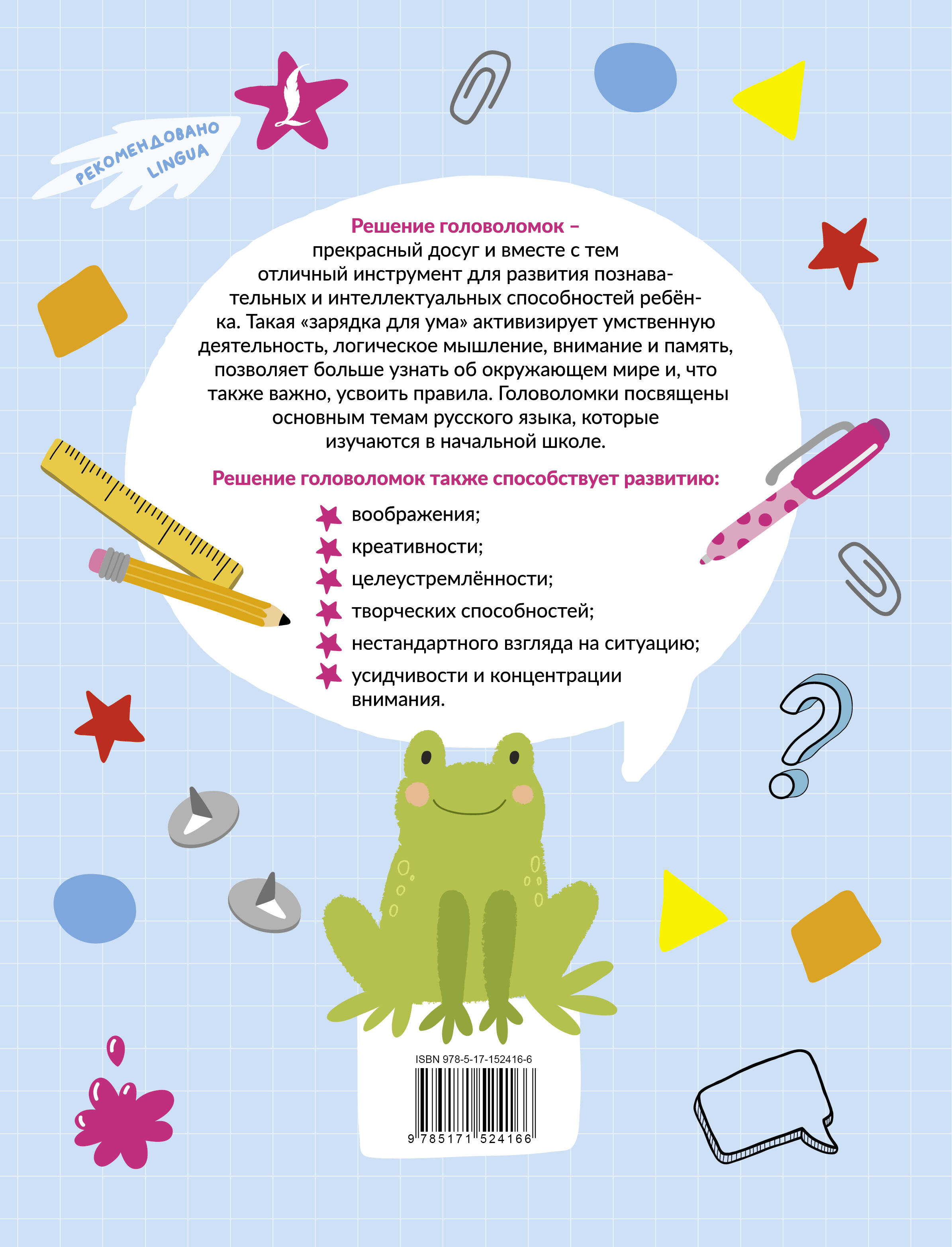 Как привлечь внимание детей к изучению русского языка? Как помочь им запомнить правила и исключения? Эти и другие вопросы волнуют многих родителей и учителей. Решение головоломок - прекрасный досуг и вместе с тем отличный инструмент для развития познавательных и интеллектуальных способностей ребёнка. В книге используются кроссворды, филворды, анаграммы, чайнворды и другие задания разного типа. Головоломки посвящены основным темам русского языка, которые изучаются в начальной школе: сочетания ЖИ-ШИ, ЧА-ЩА, суффиксы существительных, правописание Ъ и Ь, О-Ё после шипящих, склонение существительных, спряжение глаголов и другие. Книга идеально подходит детям младшего школьного возраста, будет интересна родителям и учителям.| Издательство | ИЗДАТЕЛЬСТВО "АСТ" |