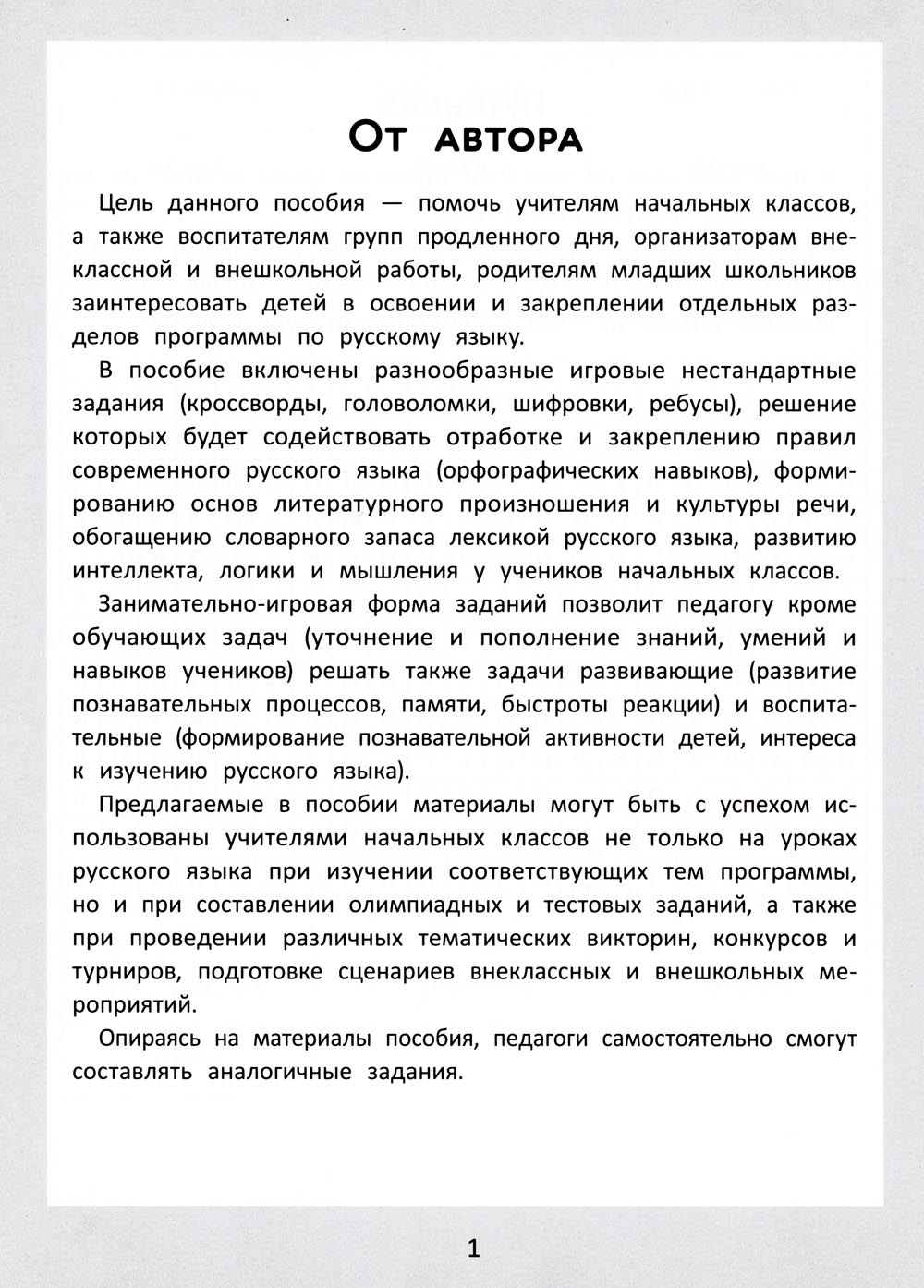 В пособии представлены нестандартные задания по русскому языку для отработки и закрепления у учеников младших классов отдельных тем программы. Материалы пособия могут быть использованы на уроках русского языка, при составлении олимпиадных и тестовых заданий, а также при проведении различных викторин, конкурсов и внеклассных мероприятий. Пособие адресовано ученикам младшей школы, учителям начальных классов, воспитателям групп продленного дня, организаторам внешкольной и внеклассной работы, родителям учащихся.| Издательство | Феникс |