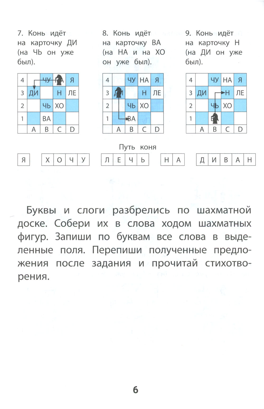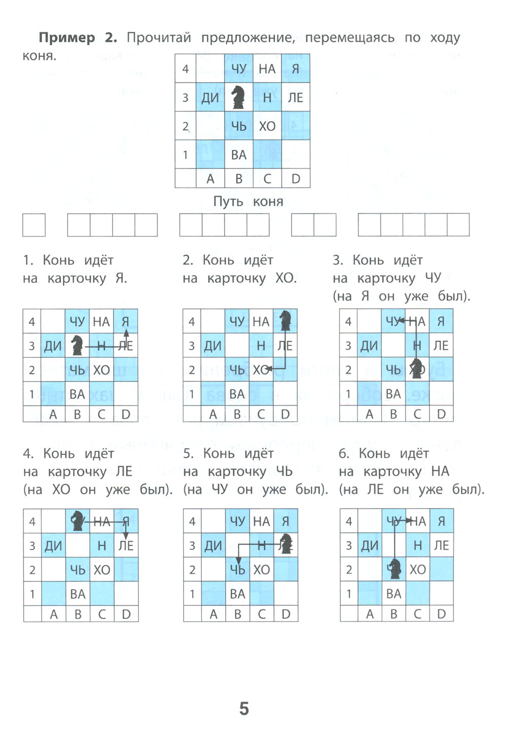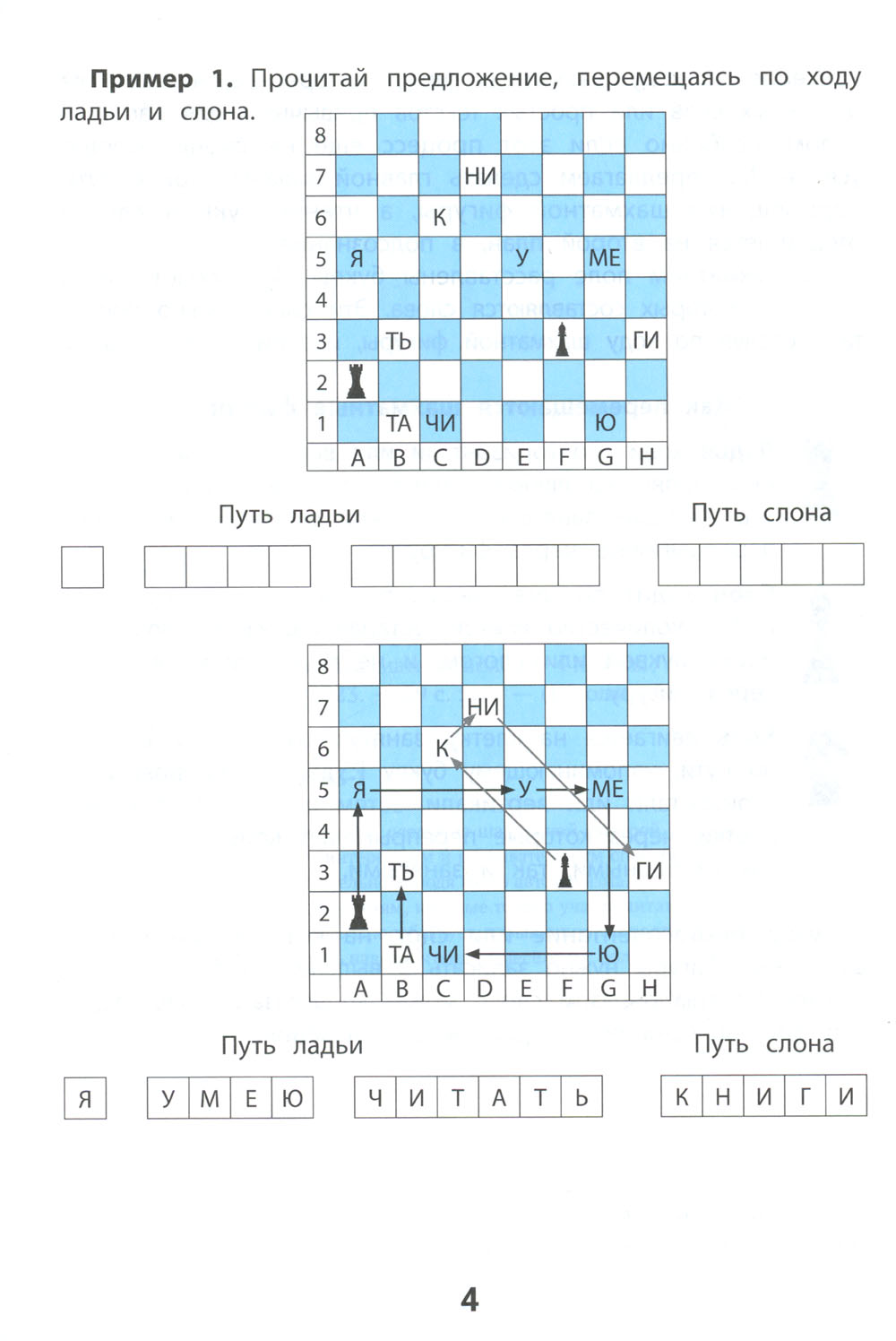 Составлять слова и фразы, следуя за шахматной фигурой, - необычно, увлекательно и весело. Таким интересным и познавательным способом ребёнок усваивает навыки чтения, подсознательно доводя их до автоматизма. Сборник рекомендован детям, которые только учатся читать, составлять буквы в слоги, а слоги - в слова. Способствует повышению скорости чтения, позволяет в игровой форме отработать навыки чтения и весело и с пользой провести время.