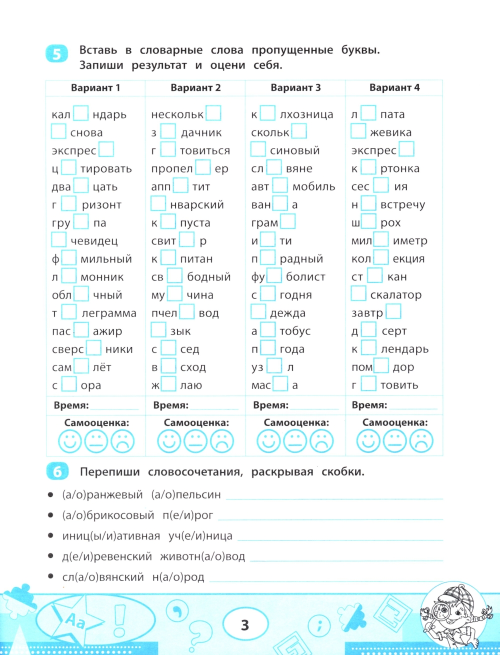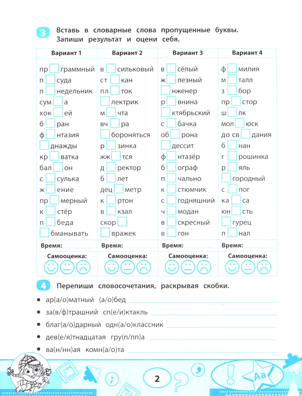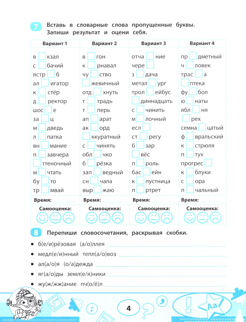 В тренажёре представлен комплекс заданий на изучение и запоминание более 1 500 словарных слов. Смайлики для самооценки и отметки о времени выполнения заданий помогут отслеживать динамику формирования навыков правописания. Задания из сборника можно использовать как на уроках русского языка, так и в качестве тренировочного материала при самостоятельных занятиях. Пособие адресовано младшим школьникам и их родителям, учителям начальных классов, репетиторам.