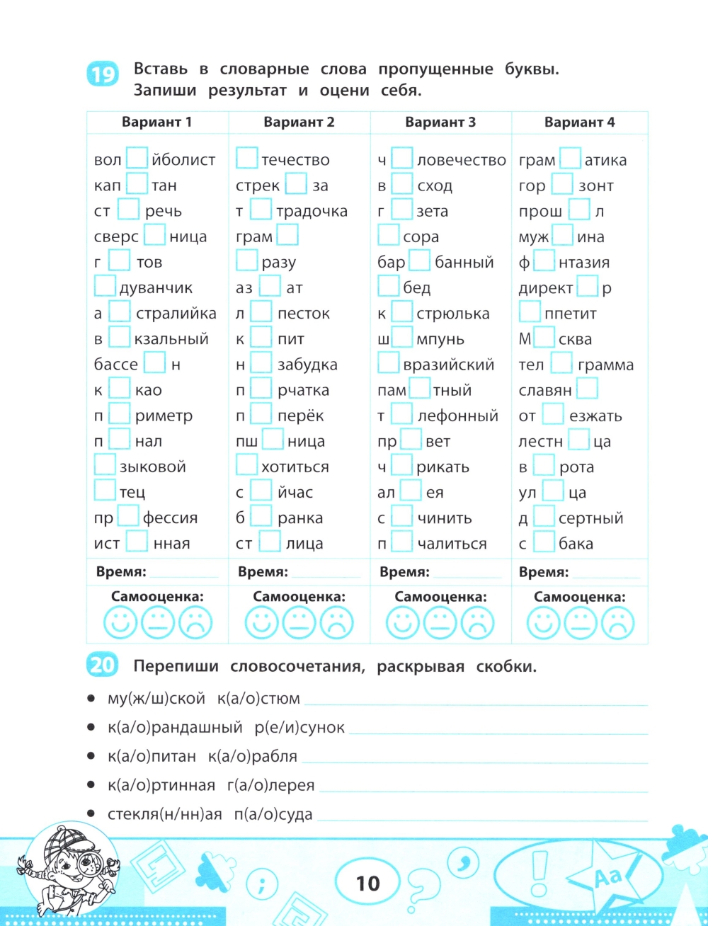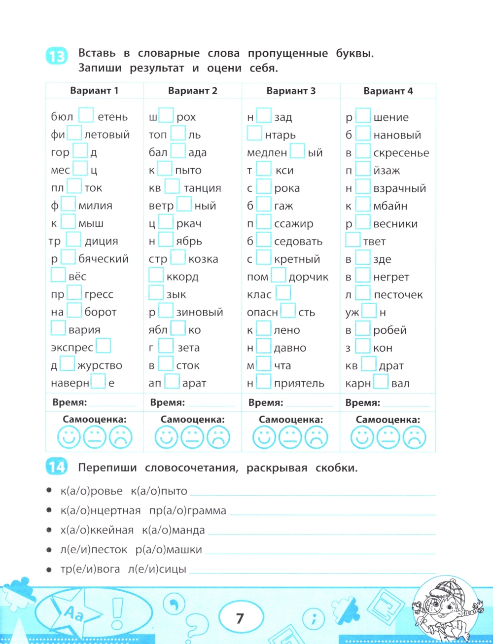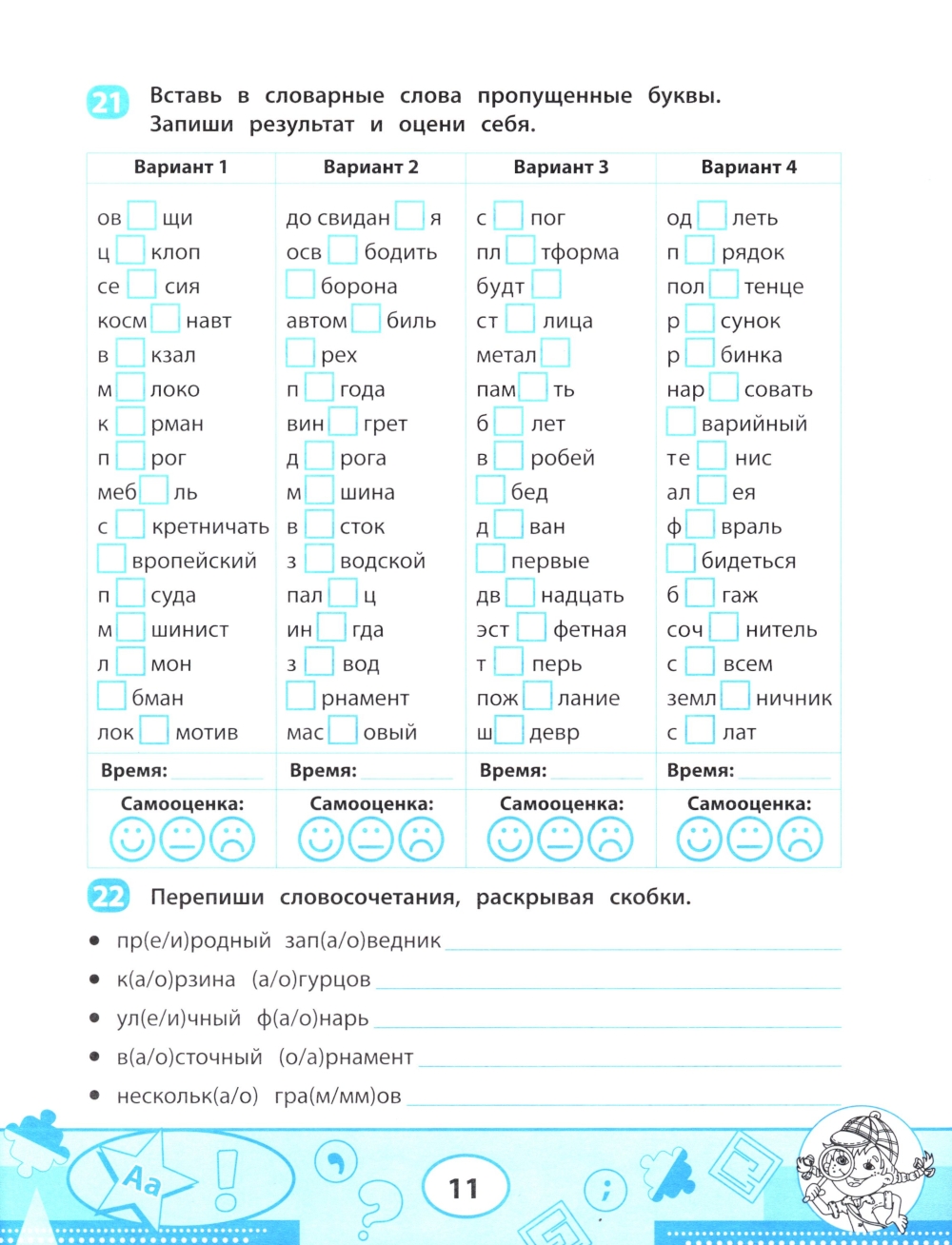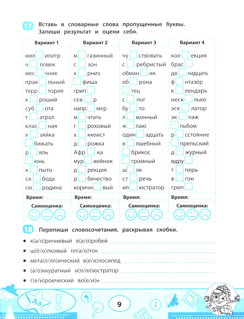 В тренажёре представлен комплекс заданий на изучение и запоминание более 1 500 словарных слов. Смайлики для самооценки и отметки о времени выполнения заданий помогут отслеживать динамику формирования навыков правописания. Задания из сборника можно использовать как на уроках русского языка, так и в качестве тренировочного материала при самостоятельных занятиях. Пособие адресовано младшим школьникам и их родителям, учителям начальных классов, репетиторам.