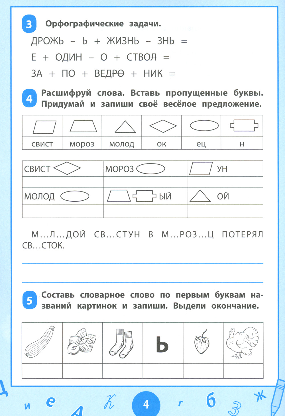 Книга содержит нестандартные задания (кроссворды, ребусы, лабиринты, орфографические задачи, тесты и др.), которые научат школьника правильно писать словарные слова. Задания составлены с использованием приёмов мнемотехники и способов, облегчающих запоминание нужной информации и увеличивающих объём памяти. Игровой формат заданий поможет ребёнку легко и быстро запомнить правописание более 120 словарных слов, предусмотренных программой для начальных классов общеобразовательной школы.