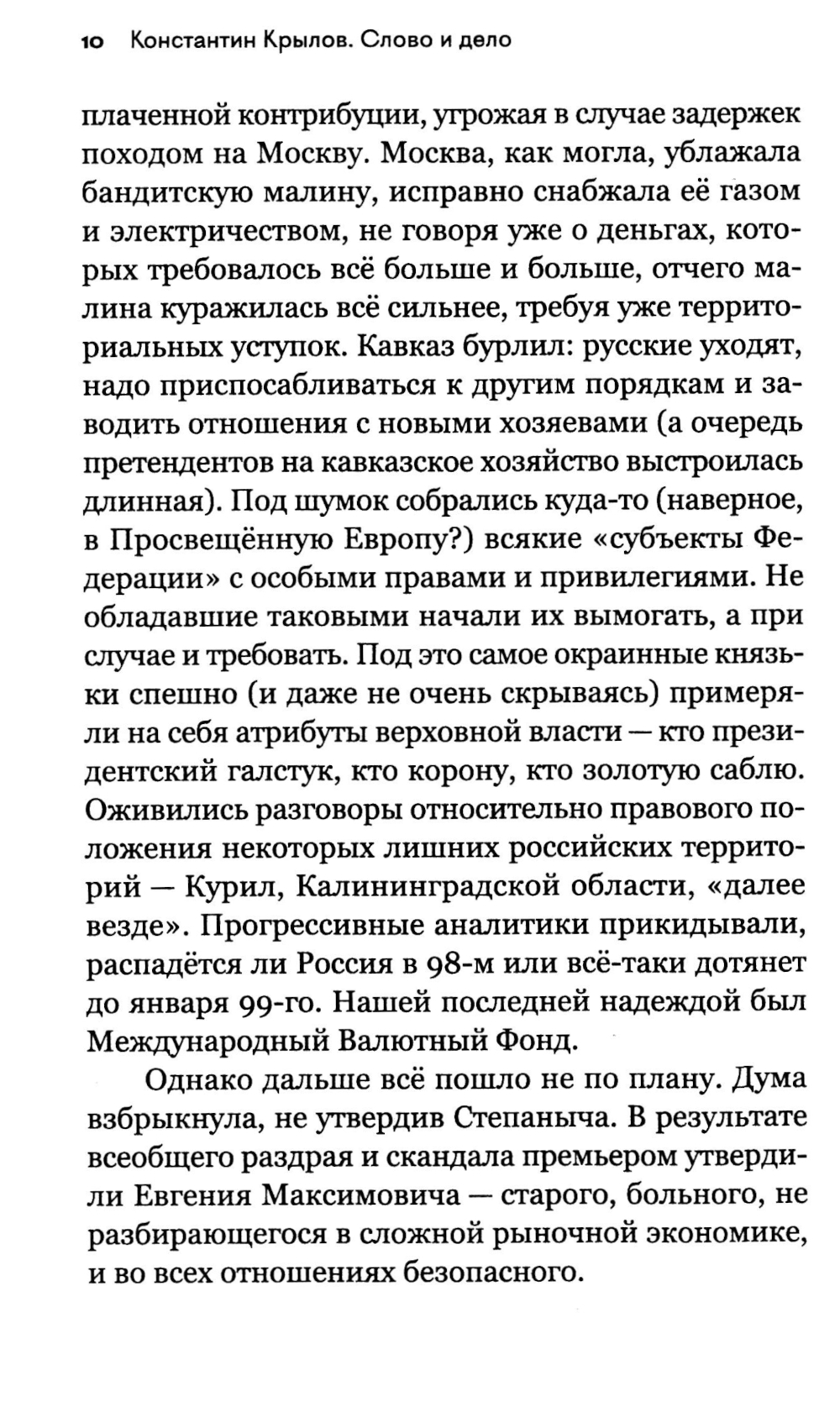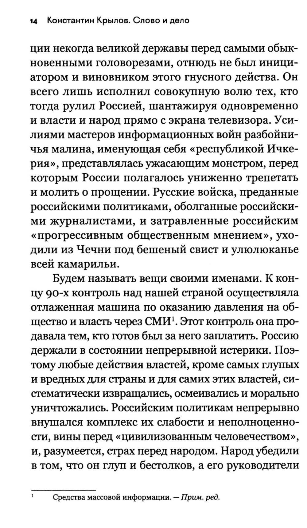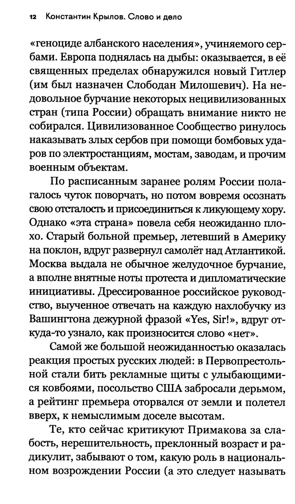 «Проклятые 90-е»... Как хочется вычеркнуть их из памяти тем, кто наживался на горе простых людей, и сейчас, балансируя на властных вертикалях, не желает ни за что отвечать. Медленно, но неотвратимо прозревал обманутый «перестройкой» русский народ... В книге представлена существенная часть творческого наследия выдающегося теоретика Русской национальной идеи, консервативного философа, блестящего политолога и искромётного публициста Константина Анатольевича Крылова (1967-2020), относящаяся непосредственно к 90-м годам прошлого века: полемические статьи, очерки нравов, политологические обзоры, искрометные посты, сохранившиеся в электронных залежах Рунета, в которых запечатлена обстановка самого неспокойного десятилетия отечественной истории XX века накануне миллениума. Данное издание продолжает публикацию трудов К. А. Крылова, начатую в книгах «Прошлое. Настоящее. Будущее» (М., «Книжный мир», 2022), «Быть русским» (М., «Книжный мир», 2023), «Как я уже сказал (Dixi)» (М., «Книжный мир», 2023), «Украинское счастье. Еще раз о «на» и «в» (М., «Книжный мир», 2024), «Взгляд справа. «Русский мир» как российская проблема» (М., «Книжный мир», 2024). Книга адресована широкому кругу читателей.| Издательство | Книжный мир |