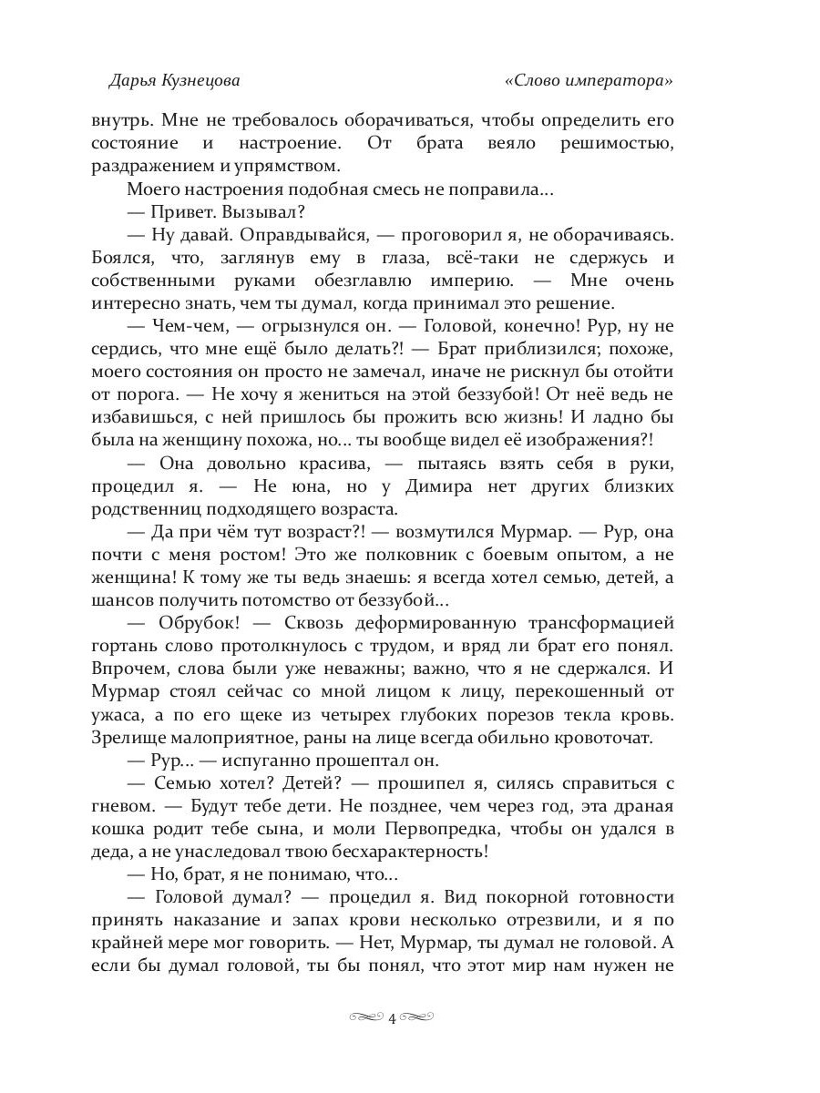 Принцесса Александра - умная девушка. Она понимает, что продолжение войны двух империй закончится крахом, поэтому без сожалений соглашается на династический брак с младшим братом владыки империи Руш, скрепляющий мирный договор. А то, что жениха в последний момент заменили... какая разница, один чужак или другой! Император Руамар - умный мужчина. Он знает, что некоторые оскорбления можно смыть только кровью, и, когда глупость брата ставит под угрозу мирное соглашение, без раздумий занимает его место у алтаря. А два умных человека всегда могут договориться, даже если один из них - и не человек вовсе.| Издательство | Т8 RUGRAM |