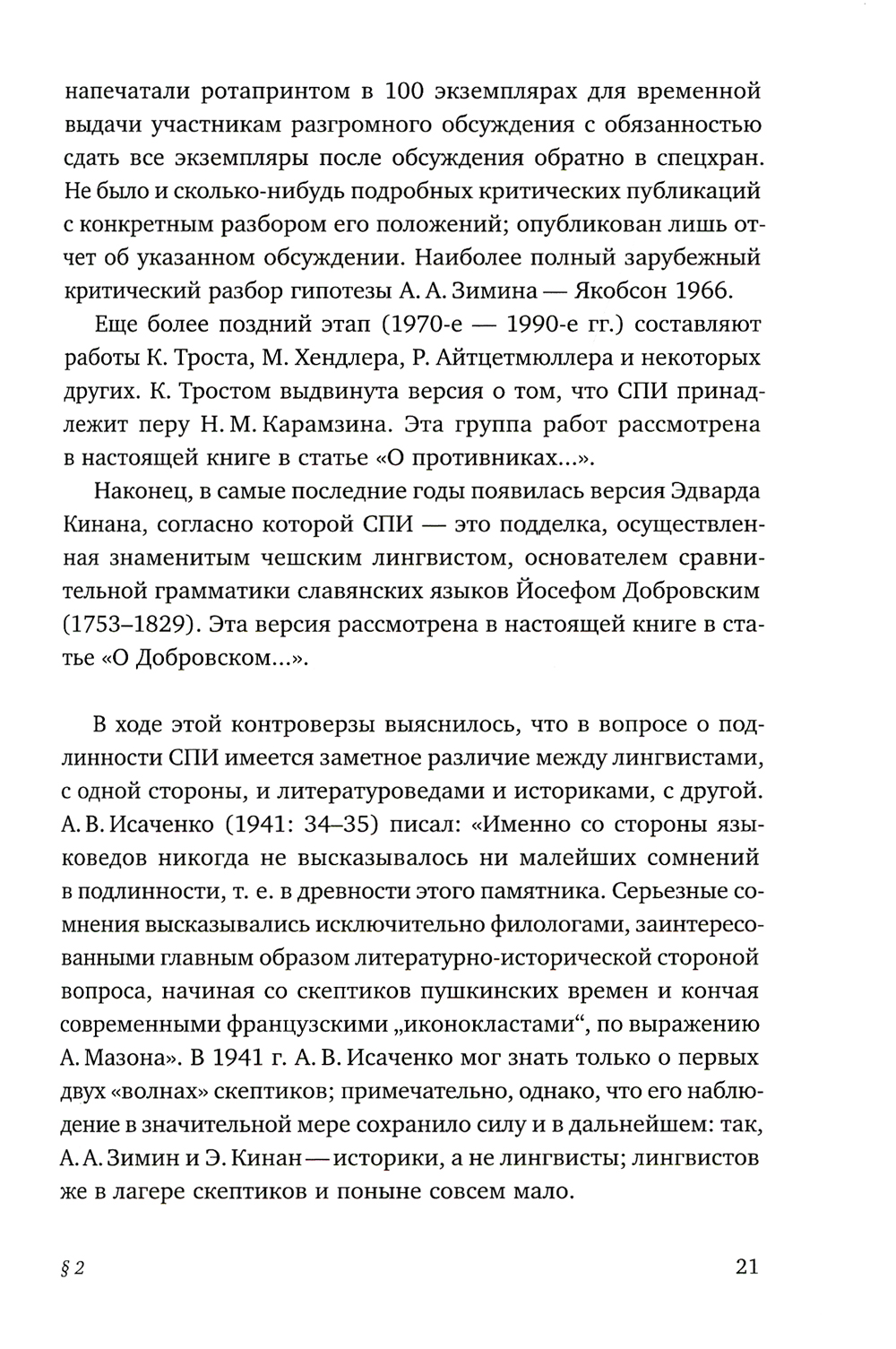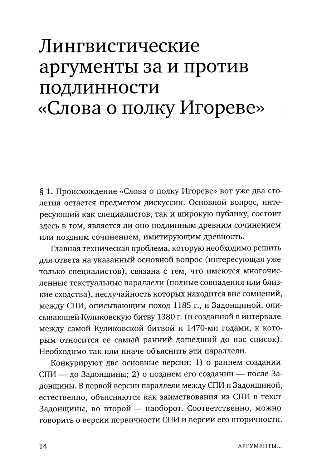 Уже двести лет не прекращается дискуссия о том, что представляет собой «Слово о полку Игореве» - подлинное древнерусское произведение или искусную подделку под древность, созданную в XVIII веке. С обеих сторон в эту дискуссию вложено много страсти, в нее часто привносятся и различные ненаучные элементы, так что во многих случаях нелегко отделить в ней научную аргументацию от эмоциональной. Гибель единственного списка этого произведения лишает исследователей возможности произвести анализ почерка, бумаги, чернил и прочих материальных характеристик первоисточника. Наиболее прочным основанием для решения проблемы подлинности или поддельности «Слова о полку Игореве» оказывается в таких условиях язык этого памятника. Настоящая книга выдающегося лингвиста Андрея Анатольевича Зализняка (1935-2017) посвящена изучению именно лингвистической стороны данной проблемы. Третье издание книги расширено по сравнению с первым и вторым. Четвертое издание воспроизводит третье с незначительными исправлениями, в основном сделанными еще автором книги для электронной публикации. Книга предназначена как для специалистов-филологов, так и для широкого круга читателей, интересующихся «Словом о полку Игореве» и его происхождением.| Издательство | Альпина нон-фикшн |
