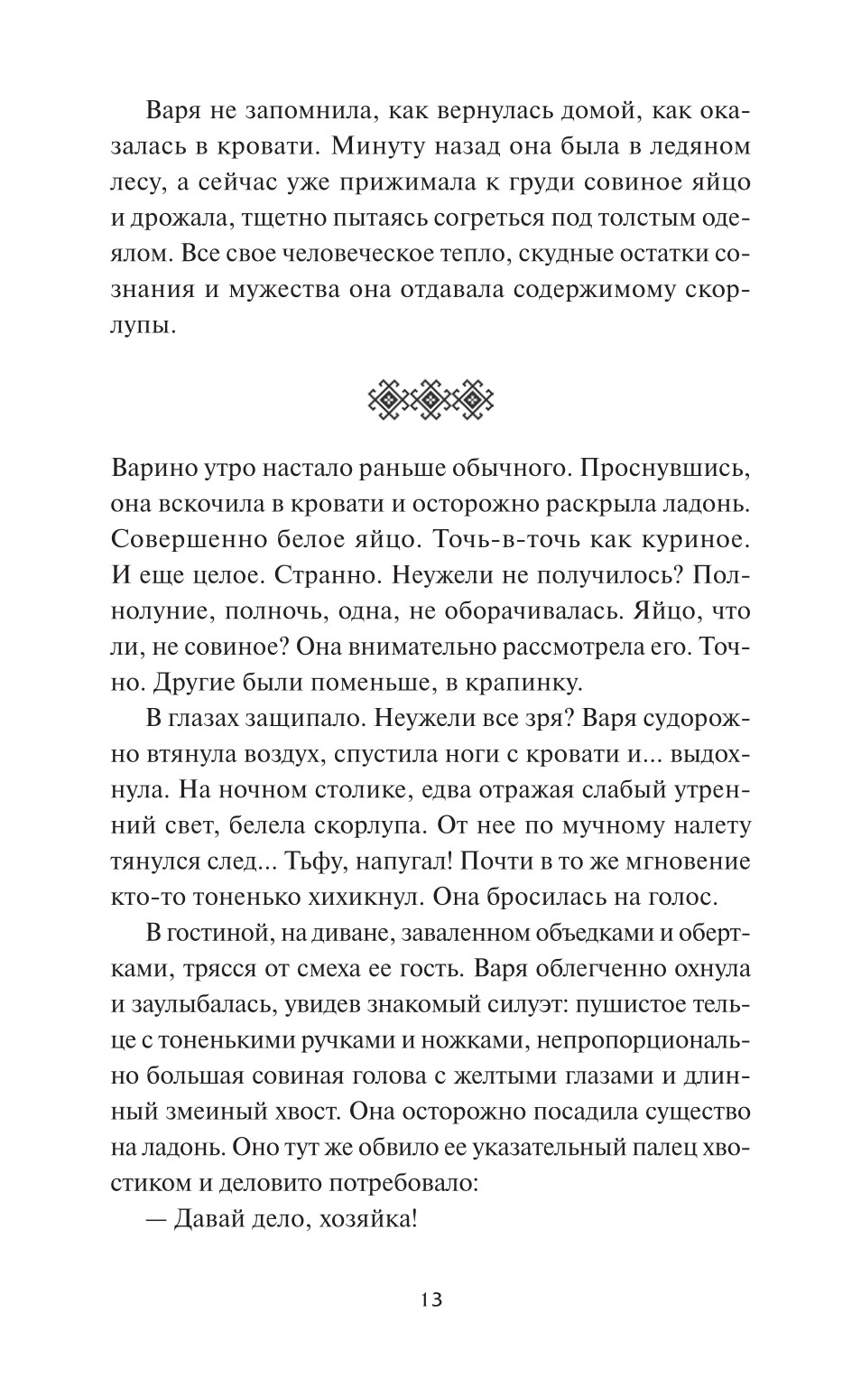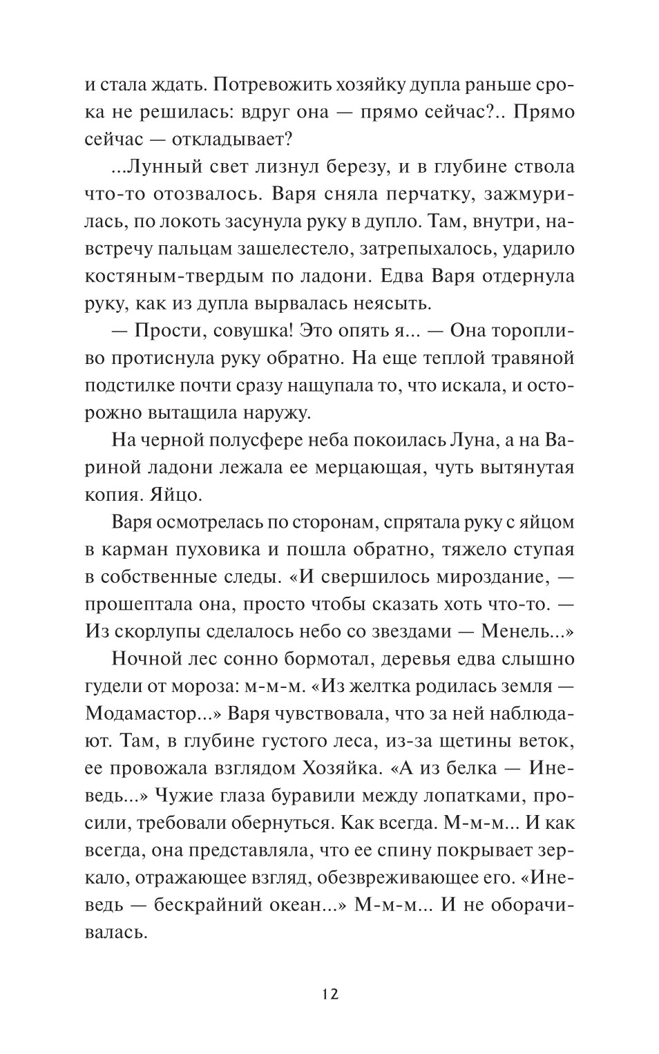 Журналистка Варя Килейкина приезжает на родину, в Мордовию, чтобы расследовать исчезновения людей в заповедном лесу. По неосторожности она навлекает на себя гнев древней богини Вирявы и оказывается в мире оживших легенд. Теперь Варя должна вернуться домой за неделю, иначе погибнет от рук Лесной хозяйки. Искать обратный путь трудно вдвойне, ведь тот, кому она больше всех доверяет, рожден, чтобы ее убить.| Издательство | Манн, Иванов и Фербер |