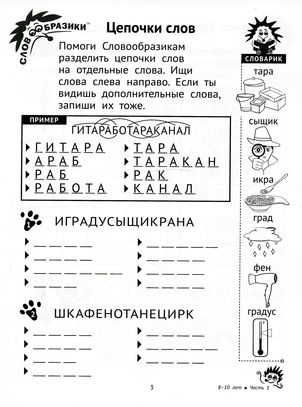 Аннотация: Словообразики для детей 8 -10 лет. Игровая тетрадь № 1 со словесными заданиями. 2-е изд., стер