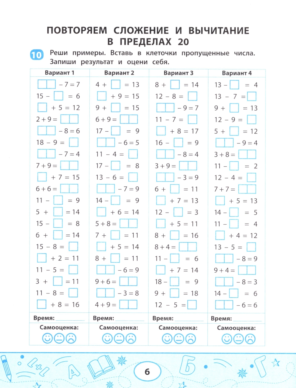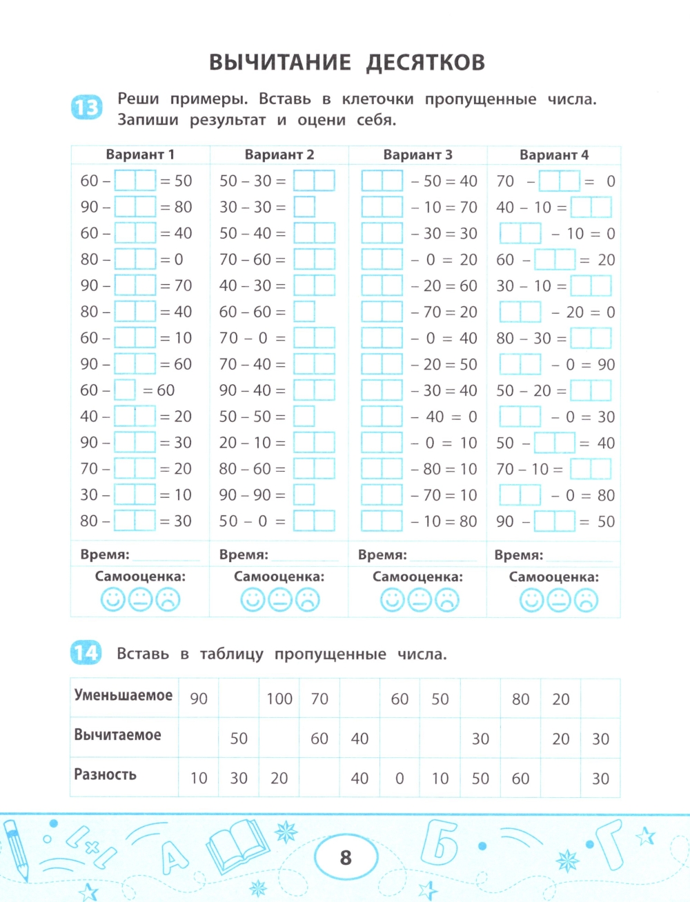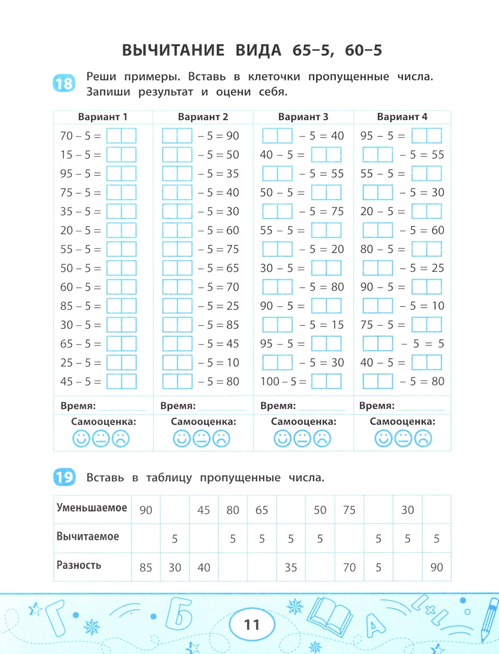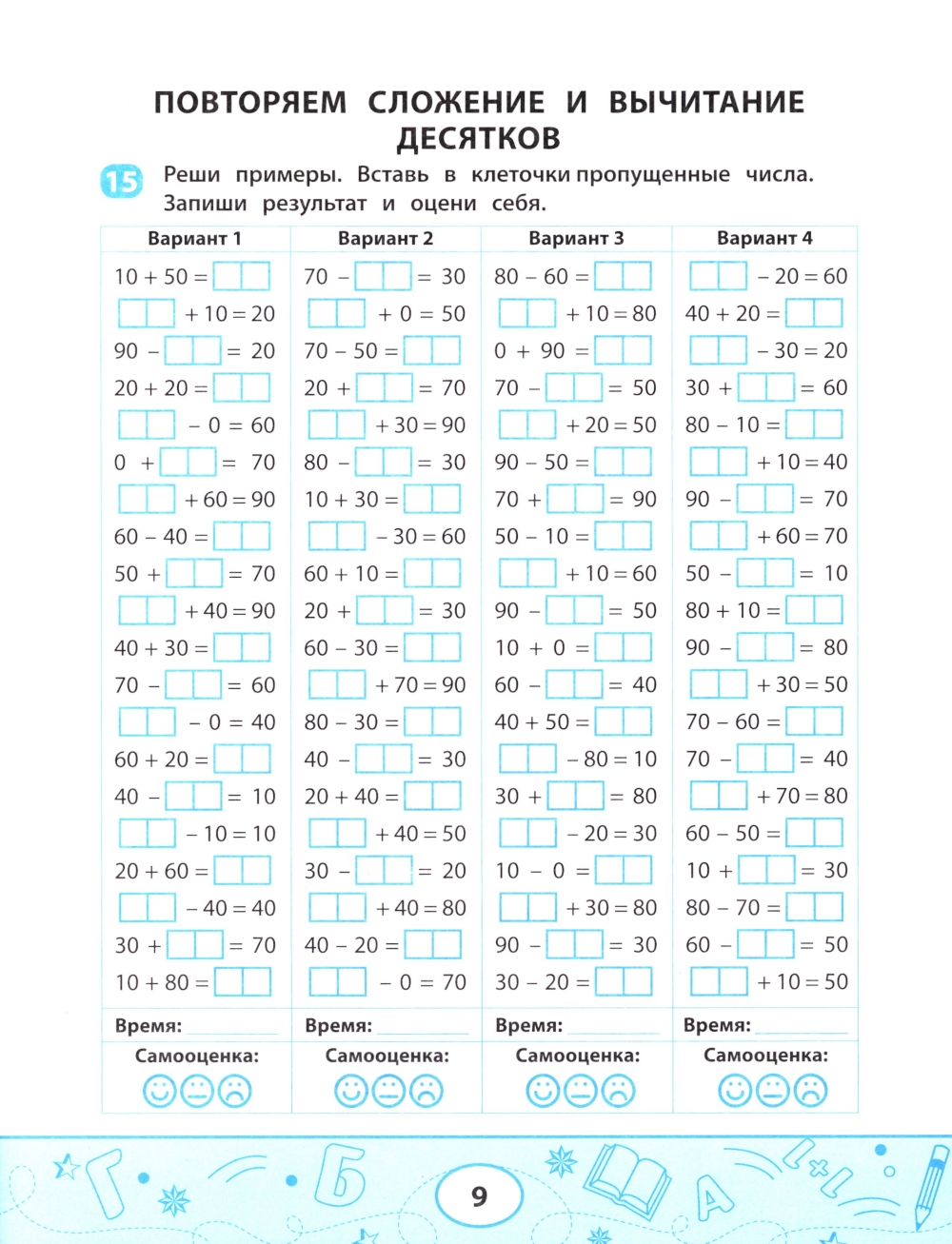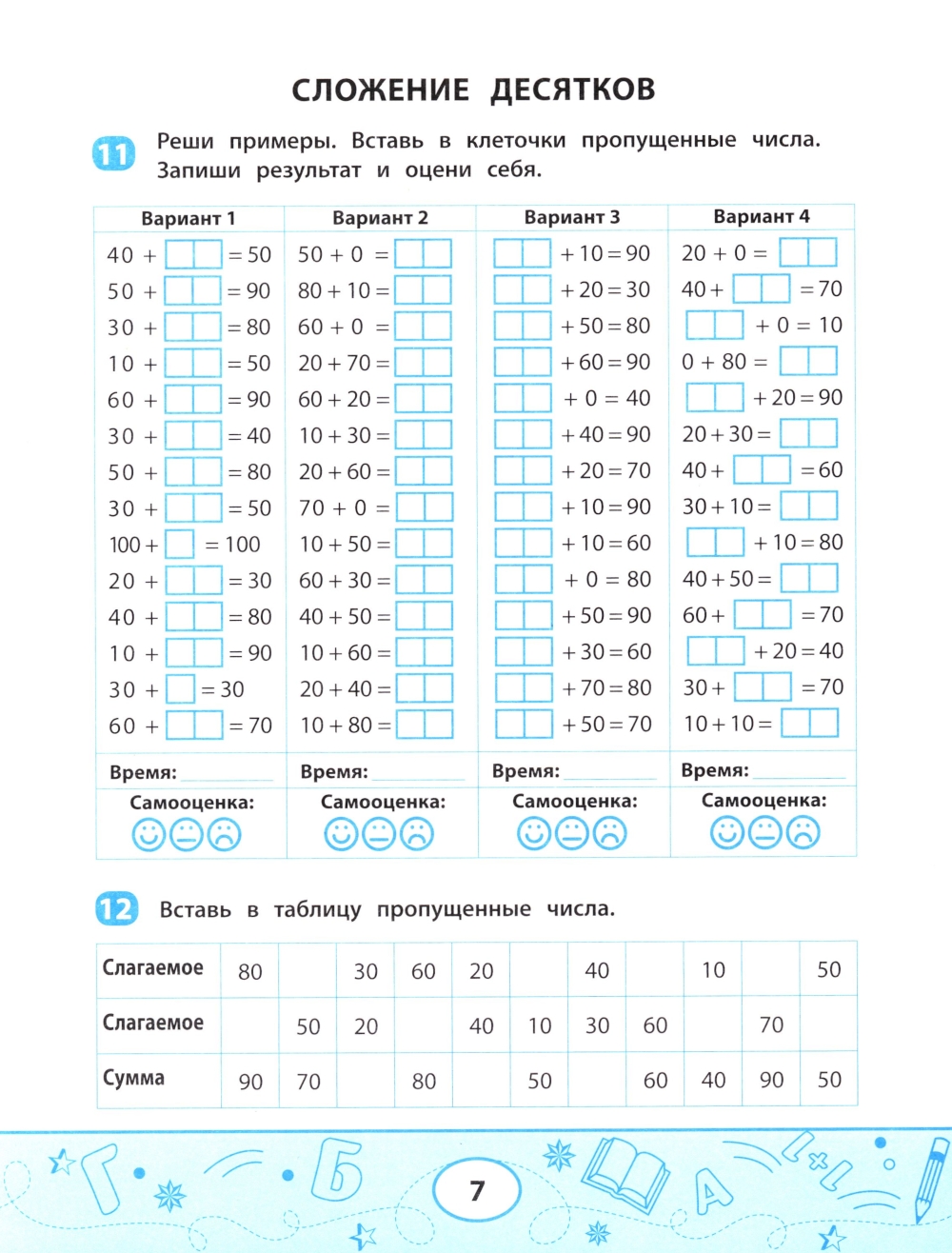 В сборнике представлен комплекс заданий на решение более 2 000 примеров на сложение и вычитание в пределах 100. Смайлики для самооценки и фиксация времени выполнения заданий помогут отслеживать динамику формирования вычислительных навыков у учеников начальных классов. Задания тренажёра можно использовать как на уроках математики, так и для занятий в домашних условиях. Пособие адресовано младшим школьникам и их родителям, учителям начальных классов, репетиторам.