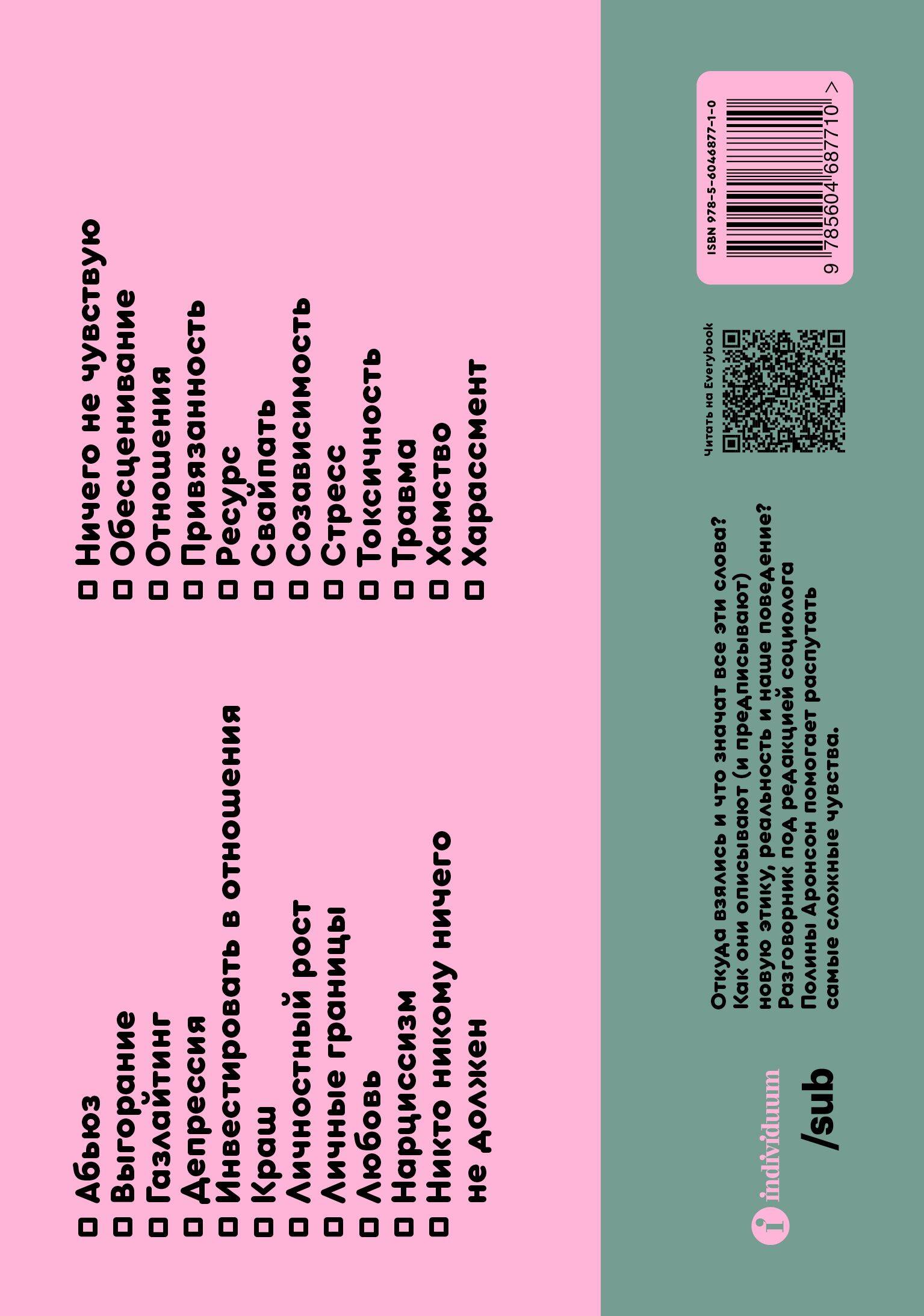 Что мы имеем в виду, говоря о токсичности, абьюзе и харассменте? Откуда берется ресурс? Почему мы так пугаем друг друга выгоранием? Все эти слова описывают (и предписывают) изменения в мышлении, этике и поведении - от недавно вошедших в язык «краша» и «свайпа» до трансформирующихся понятий «любви», «депрессии» и «хамства». Разговорник под редакцией социолога Полины Аронсон включает в себя самые актуальные и проблематичные из этих терминов. Откуда они взялись и как влияют на общество и язык? С чем связан процесс переосмысления старых слов и заимствования новых? И как ими вообще пользоваться? Свои точки зрения на это предоставили антропологи, социологи, журналисты, психологи и психотерапевты - и постарались разобраться даже в самых сложных чувствах. Книга написана коллективом авторов: Полина Аронсон, Илья Будрайтскис, Елизавета Великодворская, Кристин Годси, Гасан Гусейнов, Жанна Чернова, Владислав Земенков, Юлия Лернер, Елена Миськова Оксана Мороз, Юлия Пирумова, Жюли Реше, Дуэйн Руссель, Наталья Савельева, Юрий Сапрыкин, Ольга Соловьева, Ольга Страховская, Анна Темкина, Марина Травкова, Лариса Шпаковская, Григорий Юдин.| Издательство | ИНДИВИДУУМ ПРИНТ ООО |