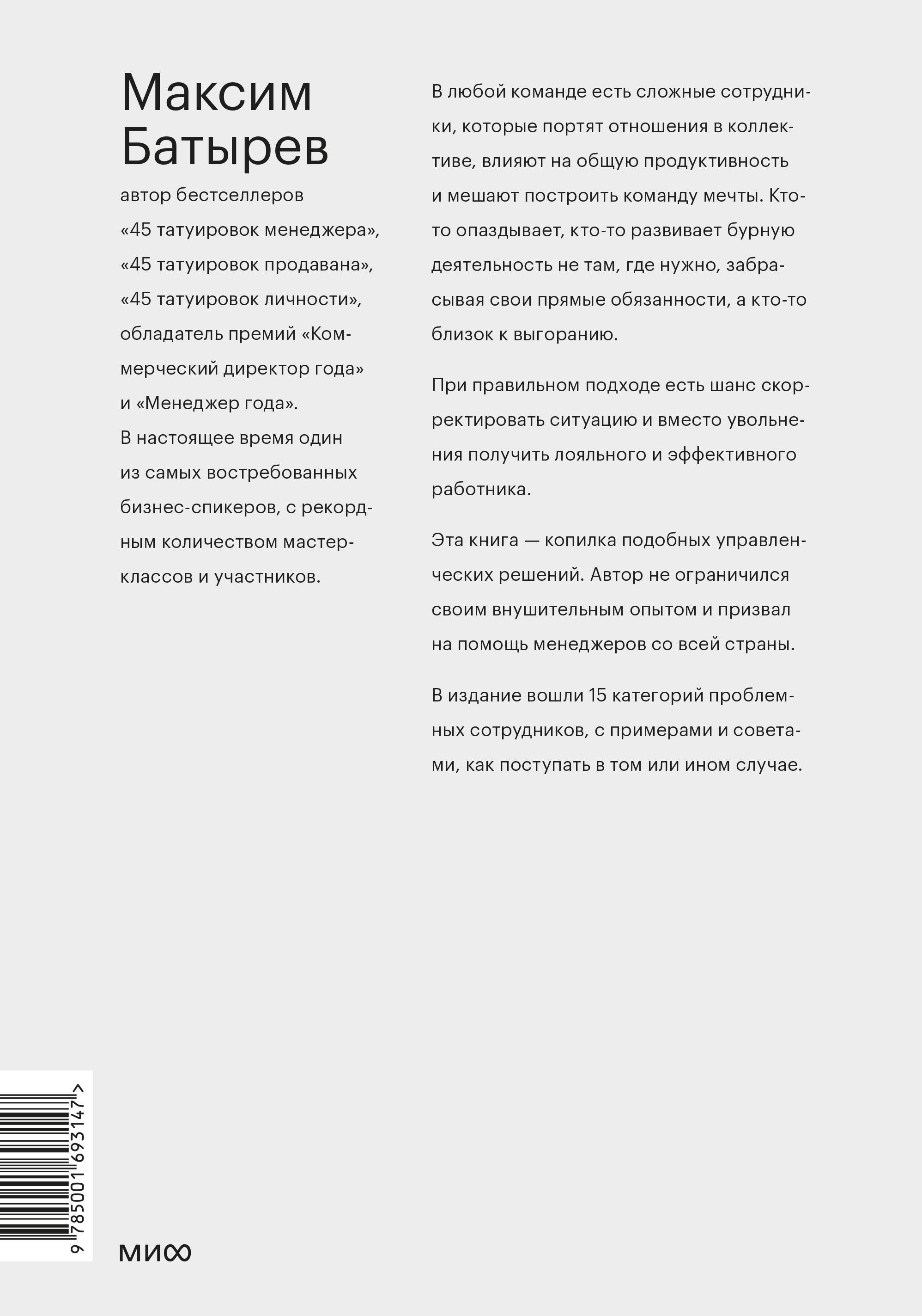 15 типов проблемных подчиненных. Истории из опыта разных компаний и общие рекомендации руководителям от Максима Батырева.| Издательство | МАНН, ИВАНОВ И ФЕРБЕР ООО |