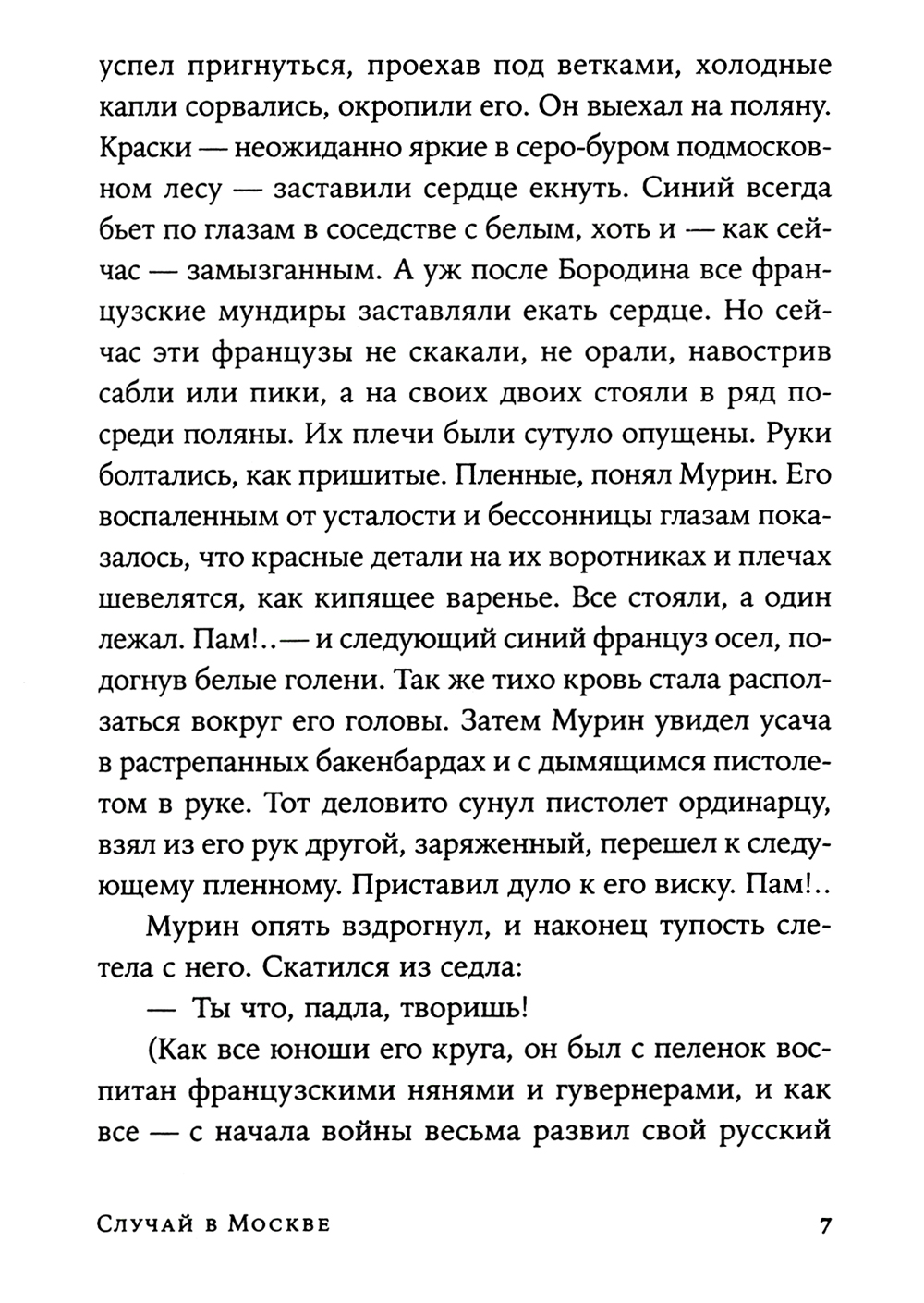 «Случай в Москве» - приквел к уже вышедшим книгам новой детективной серии Юлии Яковлевой, действие его разворачивается в 1812 году. Автор сближает выбранную эпоху с атмосферой современного «крутого» детектива: петербургский гусар Мурин, поневоле ставший сыщиком, раскрывает современно выглядящее - и в то же время возможное в любую эпоху - преступление. Октябрь 1812 года. Москву только что оставила армия Наполеона. Первые русские гусары, войдя в город, поражены его сожженным и разоренным видом. Патрулируя улицы, ротмистр Мурин с товарищем оказываются у полуразрушенного особняка. Услышав отчаянный женский крик на французском, Мурин решает вмешаться - и бросается внутрь. Кажется, происходит нечто странное, затем внезапный взрыв - и все заволакивает дымом. Война спишет любую подлость - так мыслит преступник. Но Мурин твердо намерен отыскать истину и восстановить справедливость.| Издательство | Альпина |