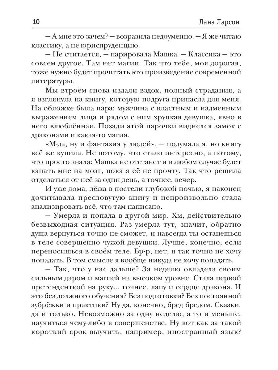 Можно ли попасть в иной мир? Нет? А я попала. Сначала в сон на странный ритуал, затем в другой мир, чужое тело и прямиком на разрыв помолвки. Ну что ж, прекрасно! Тем более замуж за первого встречного я не собираюсь. Даже за дракона. Но почему он преследует меня? Прибыл в академию, куда я сбежала в надежде узнать способ вернуться домой и постоянно ищет встречи. Он сам разорвал помолвку, что же изменилось? Я не хочу его видеть, не хочу знать, но постоянно сваливаюсь ему на голову, а сердце с каждым разом замирает все чаще. К тому же выясняется, что у меня редкая магия, на которую ведется охота, а дракон взялся меня защищать. Но возникает вопрос, отпускать он не хочет свою невесту или… меня?| Издательство | Т8 RUGRAM |