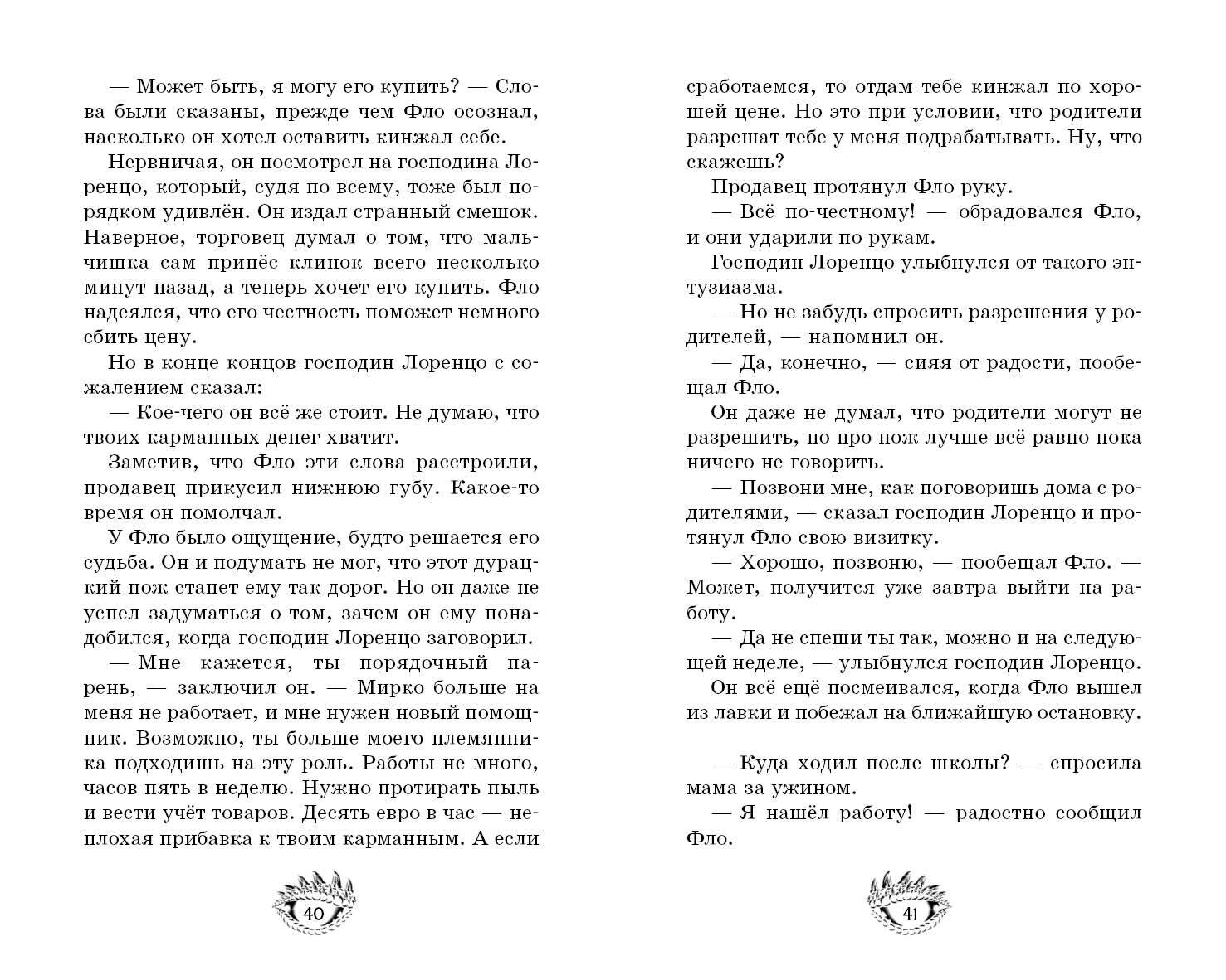 Однажды Фло находит старинный кинжал и переносится в совершенно другой мир, полный магии и опасностей! Что делает этот кинжал таким особенным? И почему мальчику снятся странные сны про людей, умерших задолго до его рождения?.. Сны, где его называют чужими именами…