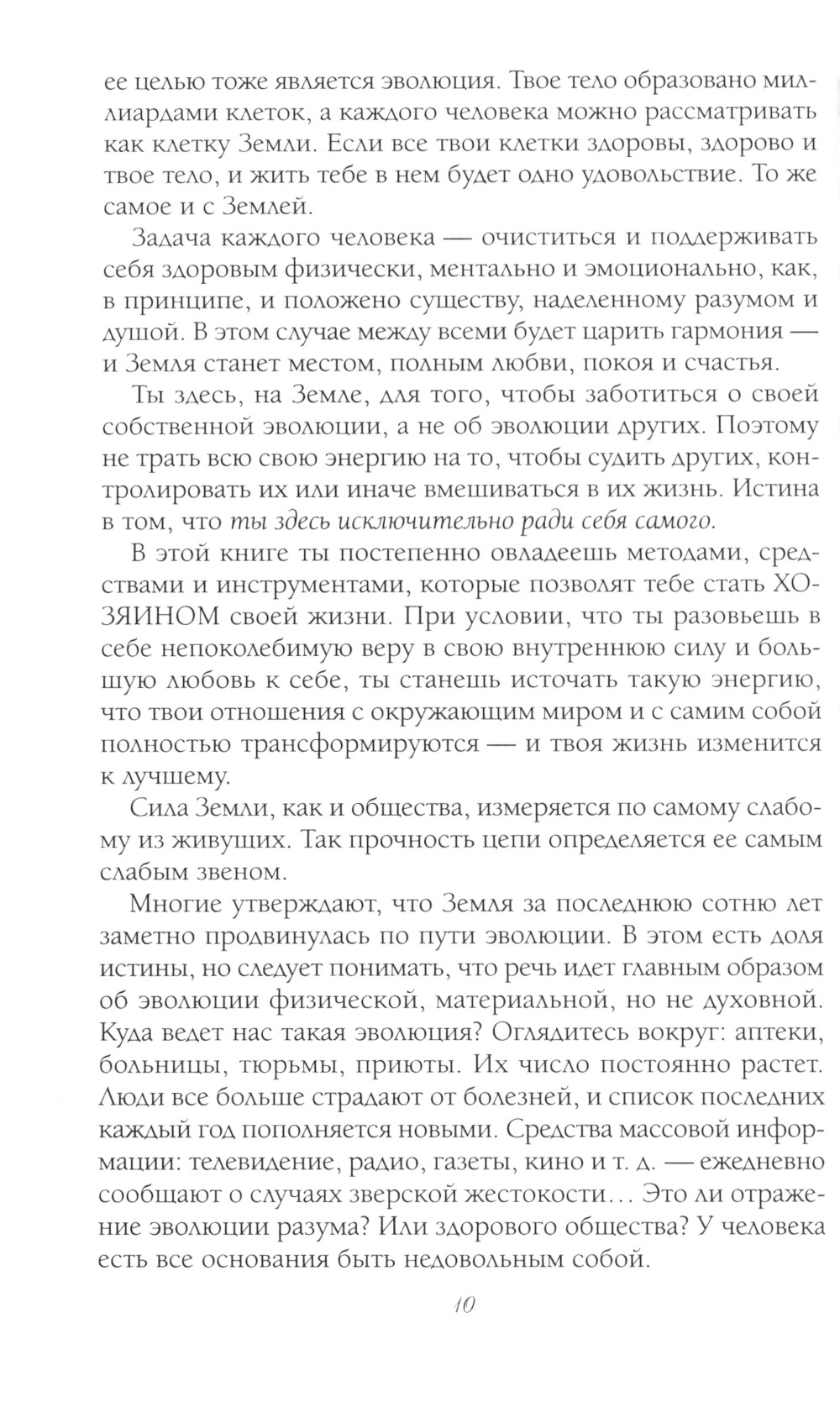 Углубленное, дополненное и полностью переработанное к тридцатилетию основания Школы «Слушай свое тело» - новое издание базовой книги Лиз Бурбо станет дивным подарком читателям. Сотни тысяч людей с помощью этой книги уже изменили свою жизнь к лучшему, преодолев препятствия на пути к счастью, здоровью и благополучию. Мы сами создаем мир, в котором живем. Почему же он получается у нас таким неуютным, безрадостным и враждебным? На многочисленных примерах Лиз Бурбо показывает, где и какие ошибки мы делаем, анализирует их и предоставляет в наше распоряжение эффективные методы, средства и инструменты, позволяющие каждому стать полным хозяином своей жизни.| Издательство | София |