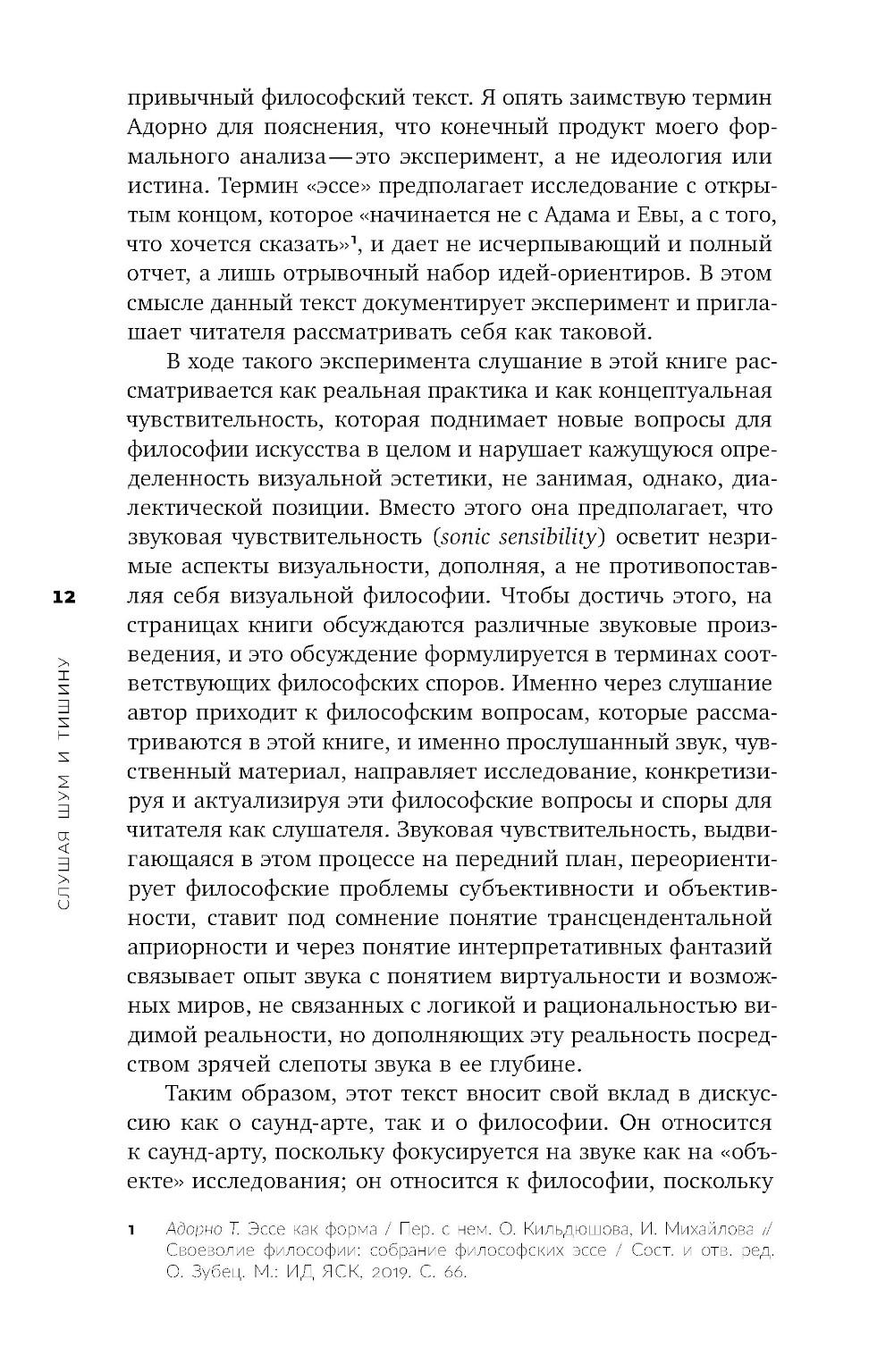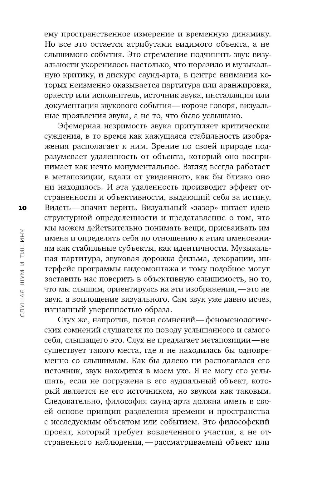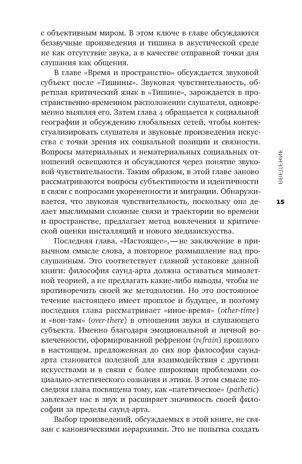 Как изменится наше восприятие действительности и суждения о ней, если мы прислушаемся к окружающим нас шуму и тишине? Этот вопрос является нервом исследования швейцарского теоретика Саломеи Фёгелин, посвященного всестороннему анализу вслушивания и различных манифестаций звукового искусства второй половины XX века - американскому минимализму, конкретной музыке, полевым записям, звуковым инсталляциям, рейвам и многому другому. Опираясь на феноменологию восприятия и критическую теорию, Фёгелин раскрывает основания собственной философской мысли: согласно ей слушание способно предложить новые способы аффективного познания и чувствования, а также обновление горизонтов cуществования, полного текучих резонансов, рефренов и эхоических отражений. Перед нами текст, бросающий вызов устоявшимся академическим лекалам - незавершенность и эфемерность звука требует особого «сонорного» письма, сопротивляющегося рациональным началам. Несмотря на фрагментарность и причудливость рассуждения Фёгелин, именно благодаря такому письму и вниманию к аудиальному присутствию мы оказываемся способны испытать удивление перед лицом мира.| Издательство | Новое литературное обозрение |