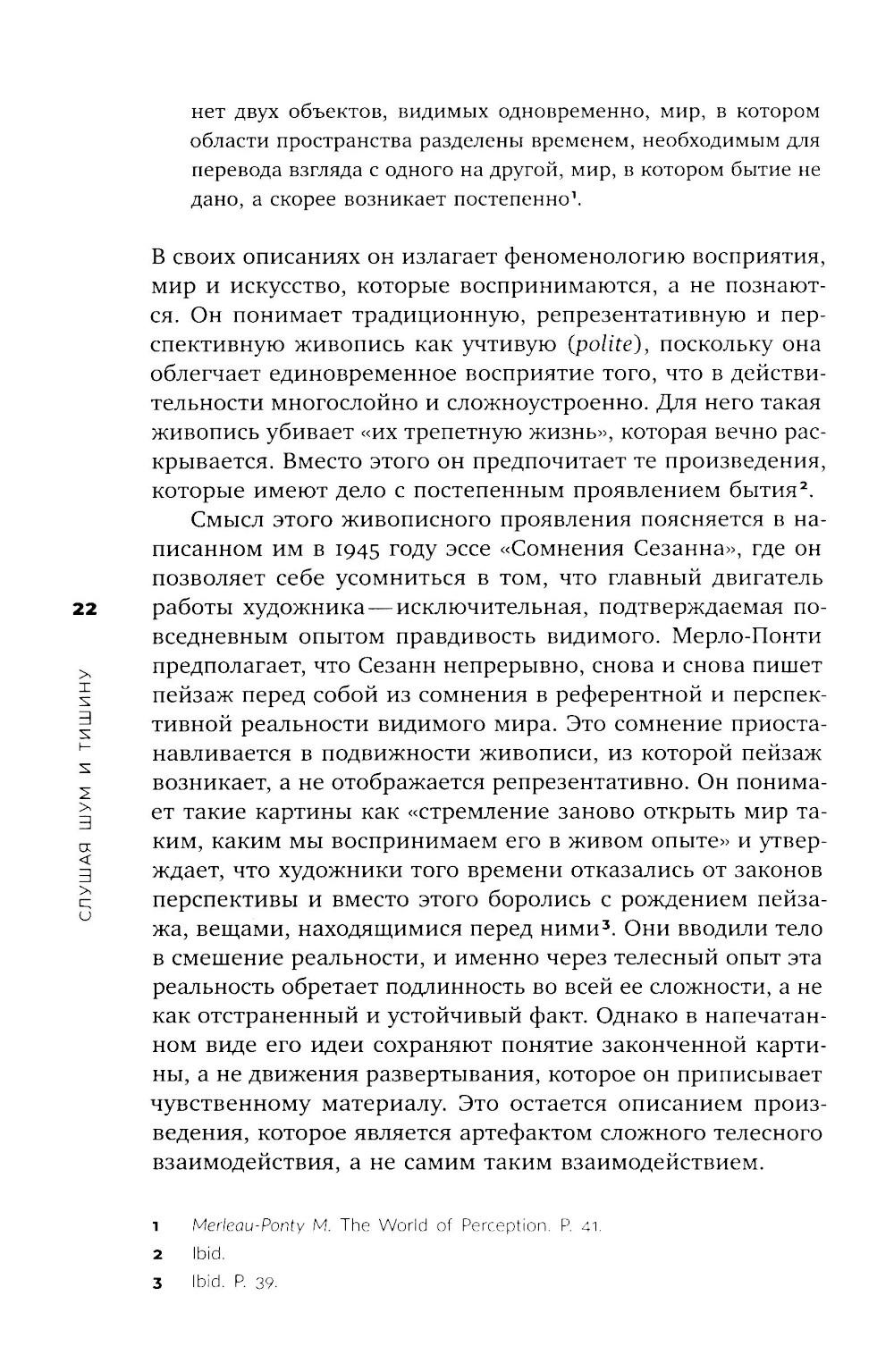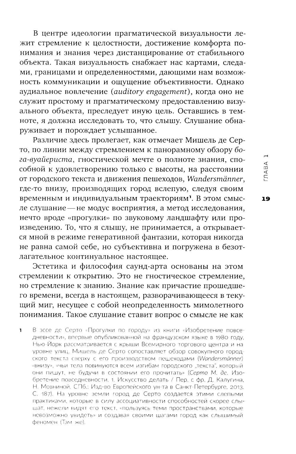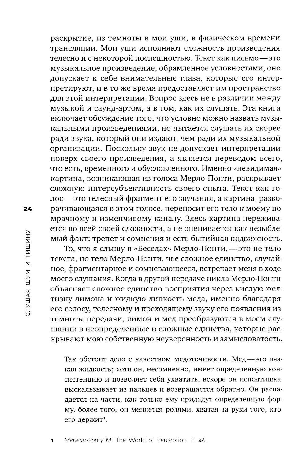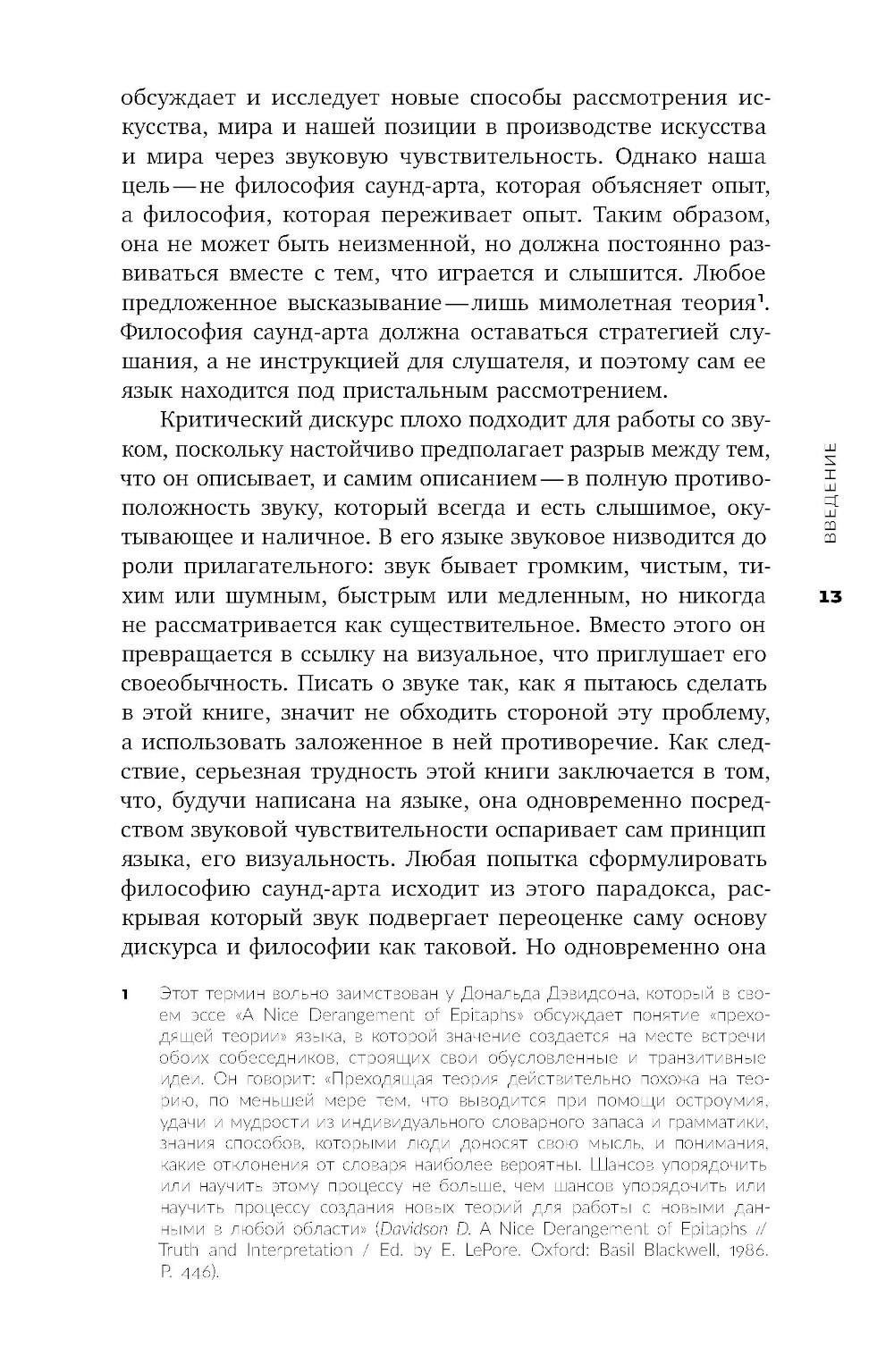 Как изменится наше восприятие действительности и суждения о ней, если мы прислушаемся к окружающим нас шуму и тишине? Этот вопрос является нервом исследования швейцарского теоретика Саломеи Фёгелин, посвященного всестороннему анализу вслушивания и различных манифестаций звукового искусства второй половины XX века - американскому минимализму, конкретной музыке, полевым записям, звуковым инсталляциям, рейвам и многому другому. Опираясь на феноменологию восприятия и критическую теорию, Фёгелин раскрывает основания собственной философской мысли: согласно ей слушание способно предложить новые способы аффективного познания и чувствования, а также обновление горизонтов cуществования, полного текучих резонансов, рефренов и эхоических отражений. Перед нами текст, бросающий вызов устоявшимся академическим лекалам - незавершенность и эфемерность звука требует особого «сонорного» письма, сопротивляющегося рациональным началам. Несмотря на фрагментарность и причудливость рассуждения Фёгелин, именно благодаря такому письму и вниманию к аудиальному присутствию мы оказываемся способны испытать удивление перед лицом мира.| Издательство | Новое литературное обозрение |