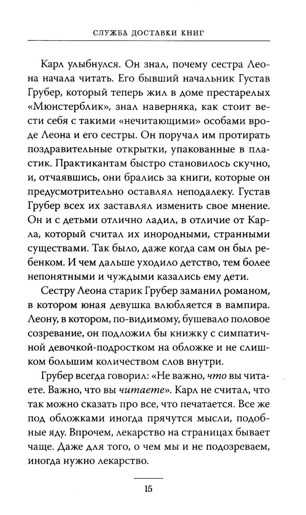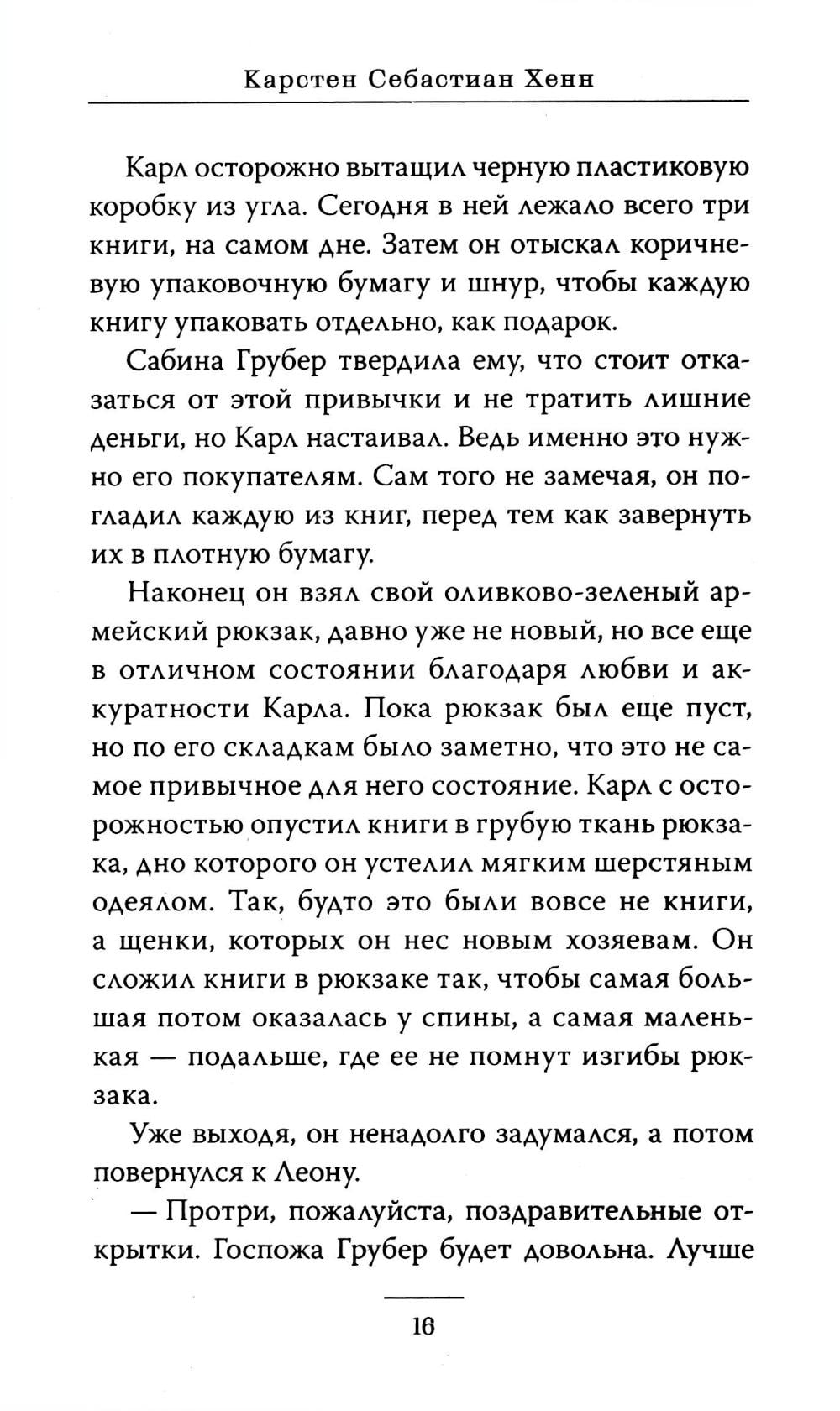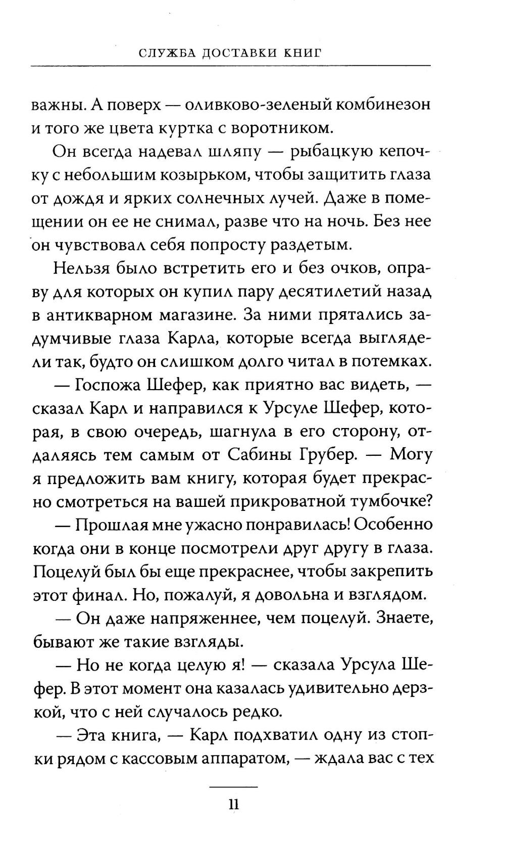 Каждый день Карл Кольхофф, пожилой продавец из книжного магазина, относит книги покупателям на дом. Это особенные покупатели, для которых Карл выбирает особенные книги. Каждого из своих клиентов Карл называет именем героя из книги (Геркулес, Фауст, Эффи и мистер Дарси) и каждого регулярно навещает, совершая книжную прогулку по одному и тому же маршруту. Но однажды к нему присоединяется девочка, которая нарушает ритуал и буквально врывается в жизнь Карла и его покупателей. Это необыкновенная история о дружбе и взаимопонимании, о книгах, книгоходцах и путях, по которым водит нас жизнь.| Издательство | Манн, Иванов и Фербер |