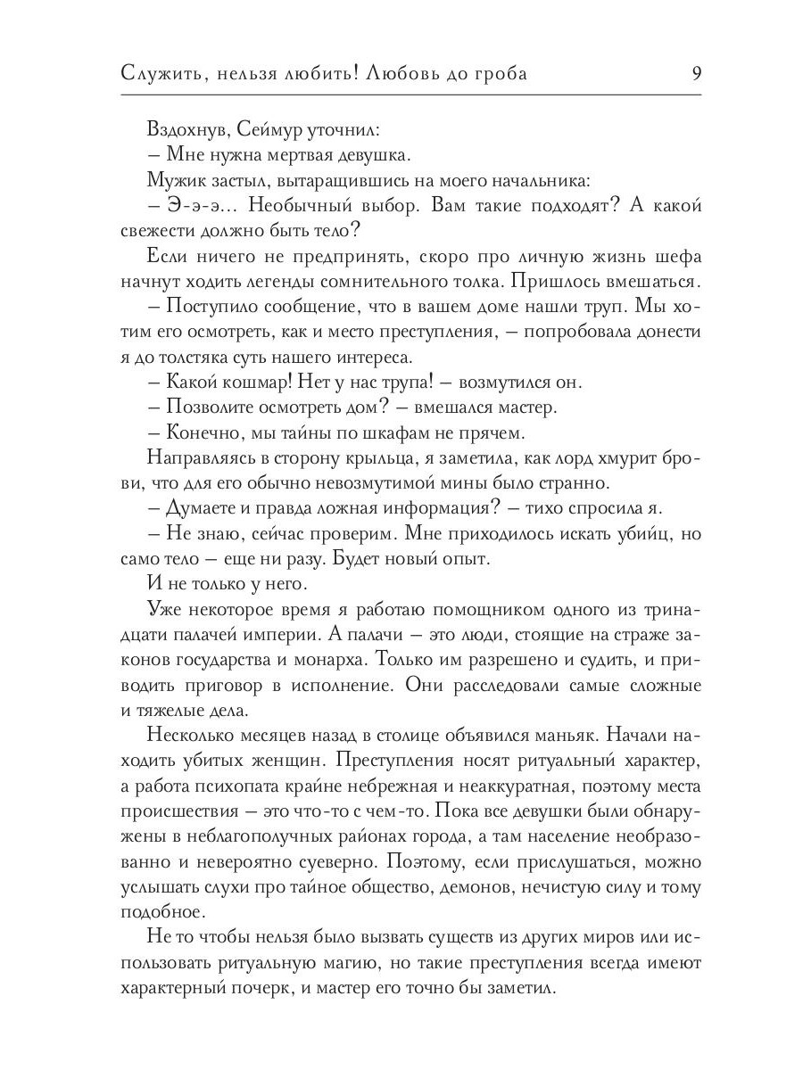 Ты - личный помощник первого палача империи, какая удача! Твой шеф красивый, влиятельный и… ядовитый гад. Твое сердце уже трепещет от восторга? Нет? Не стоит отчаиваться! Новое дело поможет вашим отношениям. Кровавый маньяк совершает преступления: крадется в ночи, преследует по пятам, выжидая подходящего часа, чтобы нанести удар. А ты, как верная помощница, должна постоянно быть рядом. И это не предложение, это - приказ!