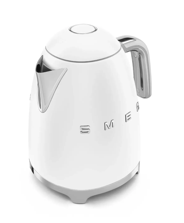 Этот чайник выделяется своей гладкой и минималистичной матовой белой отделкой, которая прекрасно вписывается в любой современный или ретро-стиль интерьера. Его культовый дизайн 50-х годов с закругленными формами и хромированными акцентами придает ему неповторимый шарм. Модель KLF03WHMEU предлагает емкость 1,7 литра, что достаточно для нескольких чашек, и мощный нагревательный элемент на 2400 Вт, обеспечивающий быстрое кипячение воды. Чайник оснащен автоматическим отключением при 100°C или когда чайник пуст, что обеспечивает безопасность. Съемный фильтр от накипи из нержавеющей стали облегчает чистку и обеспечивает чистую воду. Вращающееся на 360 градусов основание с нескользящими ножками делает его удобным в использовании как для правшей, так и для левшей. Чайник SMEG - это не только практичный кухонный предмет, но и элемент дизайна, который придаст вашей кухне элегантность и ощущение ретро, идеально сочетаясь с другими матовыми белыми кухонными приборами SMEG.