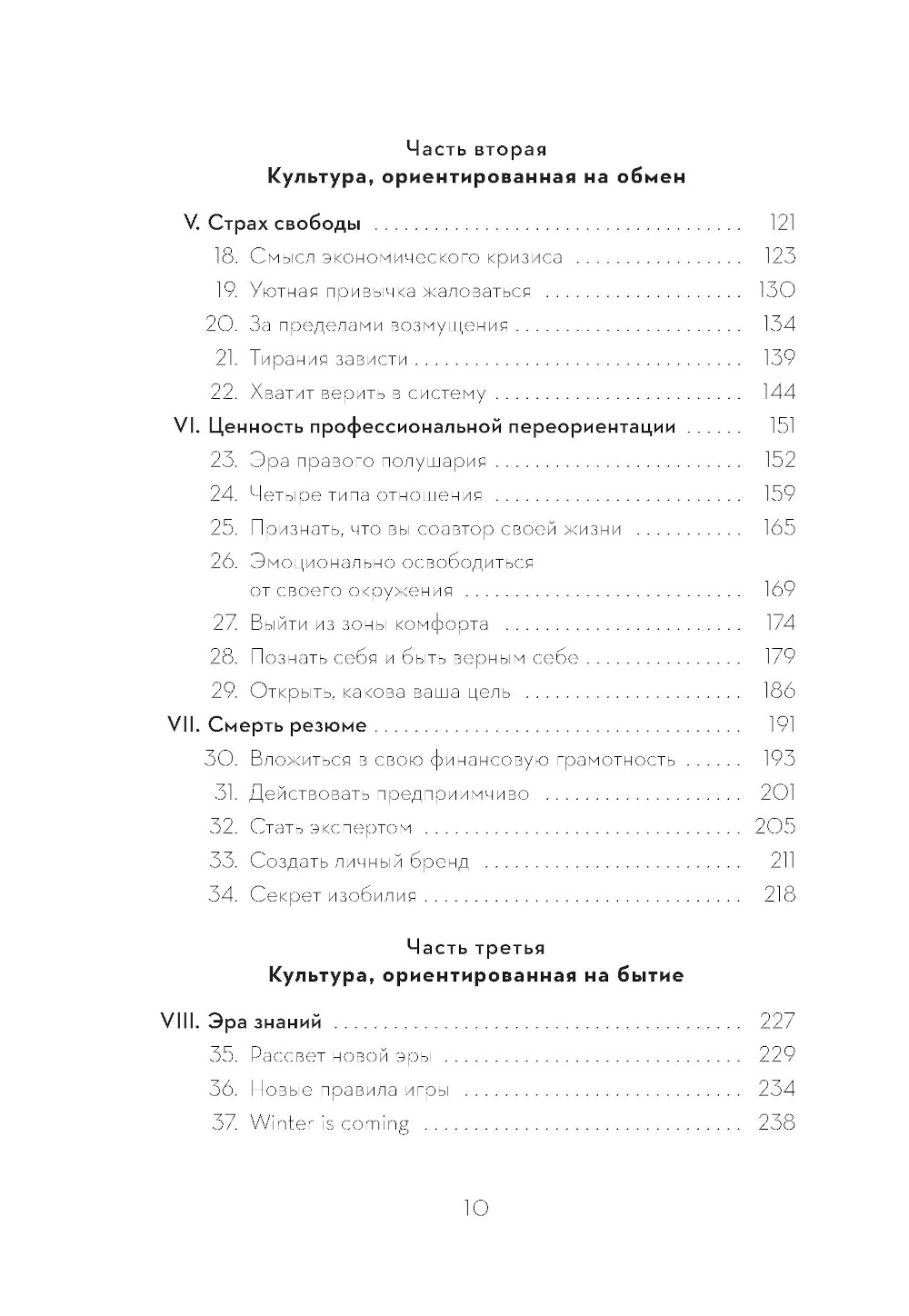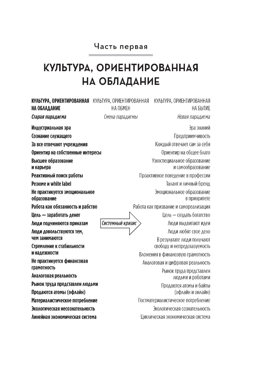 Эта книга готовит нас к смене эры. Если хочешь понять, каким будет новый рынок труда, прочти ее. Если хочешь выжить и процветать в новые времена, примени прочитанное на практике. Мир, в котором нас учили жить, перестал существовать. Правила экономической игры изменились. Мы - поколение периода смены двух эр: индустриальной/аналоговой и информационной/цифровой. Поэтому нам ничего не остается, кроме как кардинально переориентироваться, поставив под сомнение прежние установки и стереотипы, на которых мы были воспитаны. Если мы этого не сделаем, то вскоре окажемся не у дел и нам не будет места на рынке. Труднее всего - победить страх перемен. По иронии, избегать рисков и оставаться в зоне комфорта - это самое рискованное, что мы можем сделать. Настало время совершить прыжок в пустоту, чтобы выяснить, каким образом мы можем освоить полезную, творческую и осмысленную профессию, которая приносит много прибавленной стоимости. Только так мы сможем постоянно получать высокий экономический доход в эти новые времена.| Издательство | Попурри |