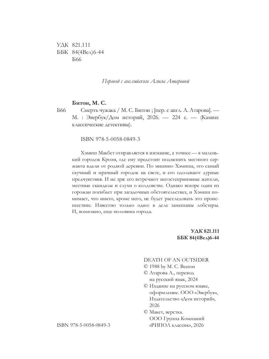 Хэмиш Макбет отправляется в изгнание, а точнее - в маленький городок Кроэн, где ему предстоит подменить местного сержанта вдали от родной деревни. По мнению Хэмиша, это самый скучный и мрачный городок на свете, и его одолевают дурные предчувствия. И не зря: его встречают негостеприимные жители, местные скандалы и слухи о колдовстве. Однако вскоре один из горожан погибает при загадочных обстоятельствах, и Хэмиш понимает, что никто, кроме него, не будет расследовать это происшествие. Известно только одно: в деле замешаны лобстеры. И, возможно, еще половина города.| Издательство | Дом историй |