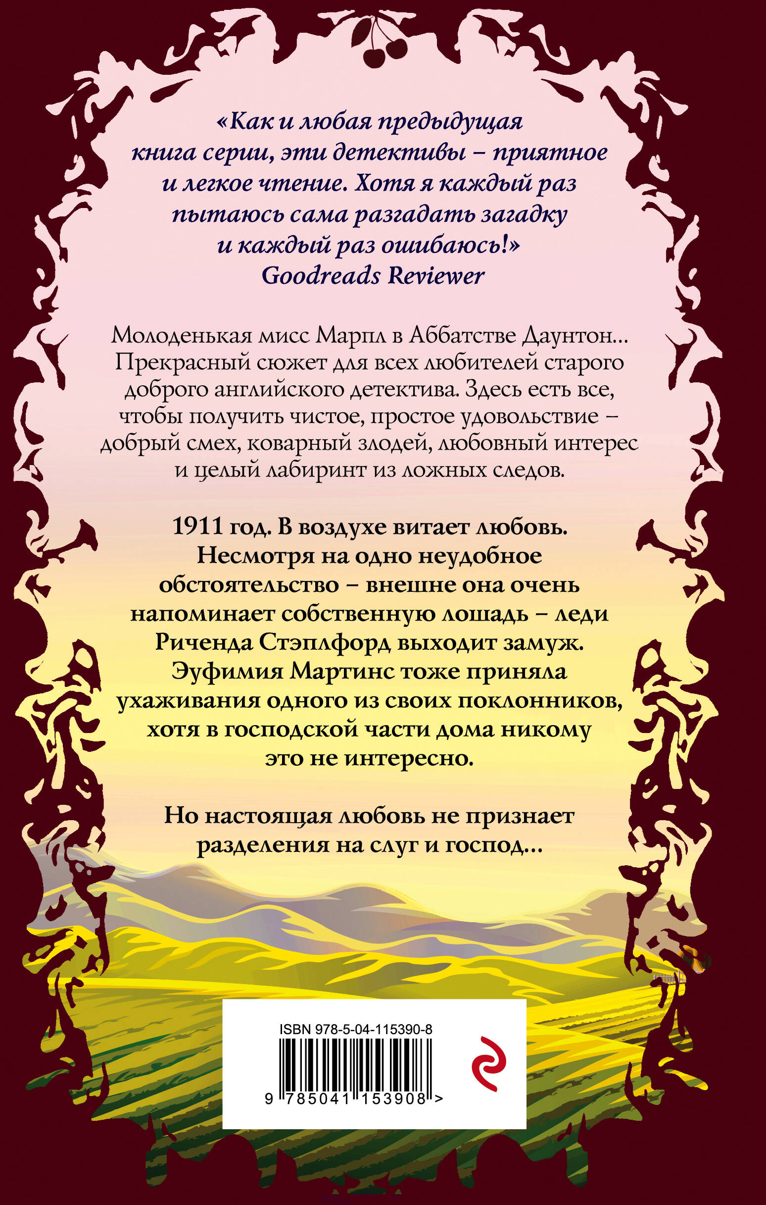 1911 год. В воздухе витает любовь. Несмотря на одно неудобное обстоятельство - внешне она очень напоминает собственную лошадь - леди Риченда Стэплфорд выходит замуж. Эуфимия Мартинс тоже приняла ухаживания одного из своих поклонников, хотя в господской части дома никому это не интересно. Но настоящая любовь не признает разделения на слуг и господ… Эуфимия теперь удостоена высокого звания экономки. Когда на свадебном торжестве умирает один из гостей, ей приходится взять расследование на себя. Как всегда, в ее распоряжении только ее собственный острый ум, добродетель и неизменный пронзительный крик, который не раз придет ей на помощь в ситуации, которая становится все более и более жуткой… Молоденькая мисс Марпл в Аббатстве Даунтон… Прекрасный сюжет для всех любителей старого доброго английского детектива. Здесь есть все, чтобы получить чистое, простое удовольствие - добрый смех, коварный злодей, любовный интерес и целый лабиринт из ложных следов.| Издательство | ООО "Издательство "Эксмо" |