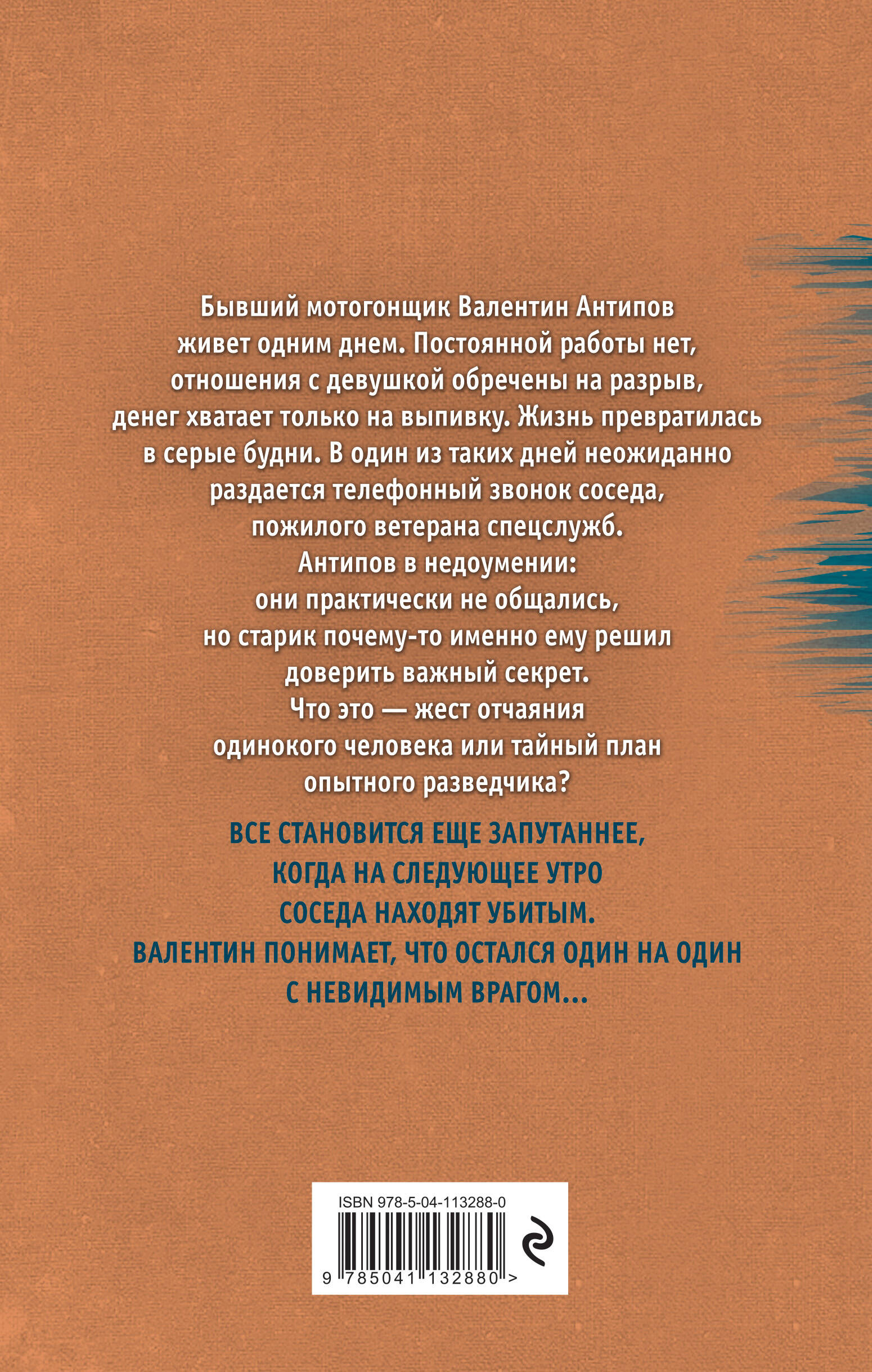 Захватывающая история о том, как неожиданный телефонный звонок превратил вчерашнего спортсмена в объект интереса сразу нескольких контрразведок. Бывший мотогонщик Валентин Антипов живет одним днем. Постоянной работы нет, отношения с девушкой обречены на разрыв, денег хватает только на выпивку. Жизнь превратилась в серые будни. В один из таких дней неожиданно раздается телефонный звонок от соседа, пожилого ветерана спецслужб. Антипов в недоумении: они практически не общались, но старик почему-то именно ему решил доверить важный секрет. Что это - жест отчаяния одинокого человека или тайный план опытного разведчика? Все становится еще запутаннее, когда на следующее утро соседа находят убитым. Валентин понимает, что остался один на один с невидимым врагом…| Издательство | ООО "Издательство "Эксмо" |