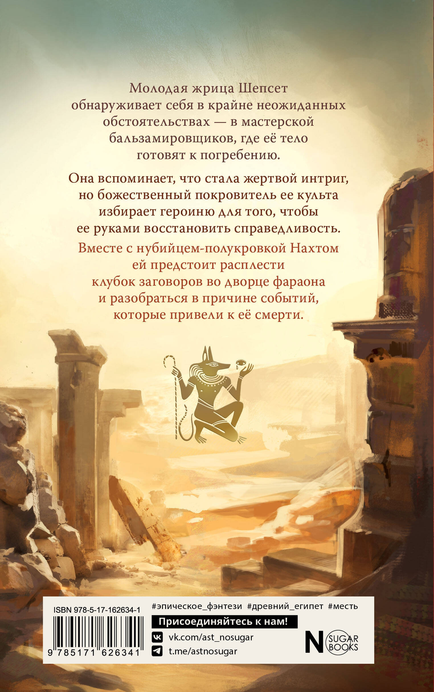 Молодая жрица Шепсет обнаруживает себя в крайне неожиданных обстоятельствах - в мастерской бальзамировщиков, где ее тело готовят к погребению. Она вспоминает, что стала жертвой интриг, но божественный покровитель её культа избирает героиню для того, чтобы её руками восстановить справедливость. Вместе с нубийцем-полукровкой Нахтом ей предстоит расплести клубок заговоров во дворце фараона и разобраться в причине событий, которые привели к ее смерти.| Издательство | Издательство "АСТ" |