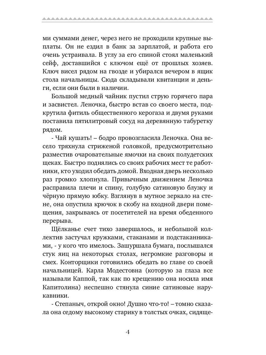 В Москве, летом 1937 года, на своем рабочем месте, в обед был таинственно убит ударом по голове Василий Петрович Иванов - скромный счетовод конторы «МОССБЫТДРОВА». Леночку, юную секретаршу этого учреждения, удивляет, что никого не интересует это происшествие. Она решает найти убийцу самостоятельно. Леночка начинает собственное расследование, но ей кто-то мешает.| Издательство | Рипол Классик |