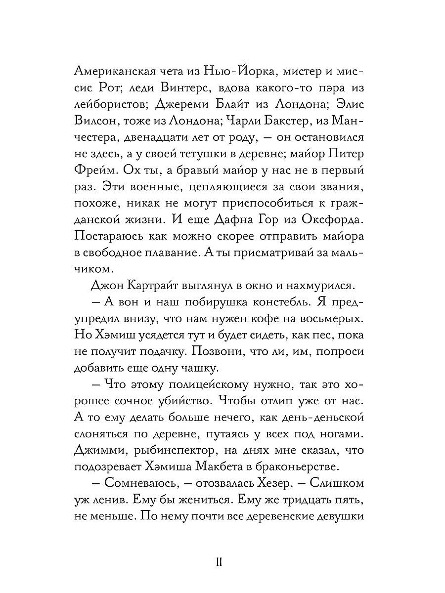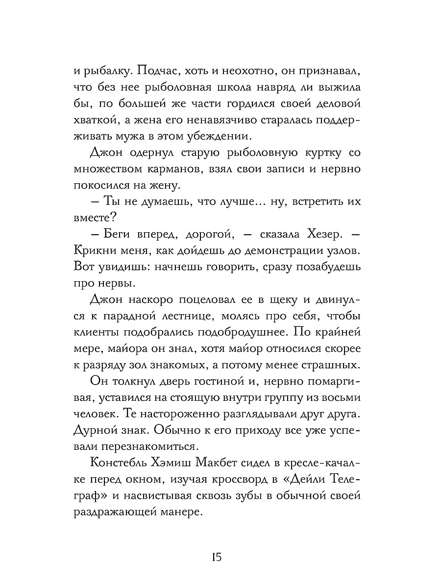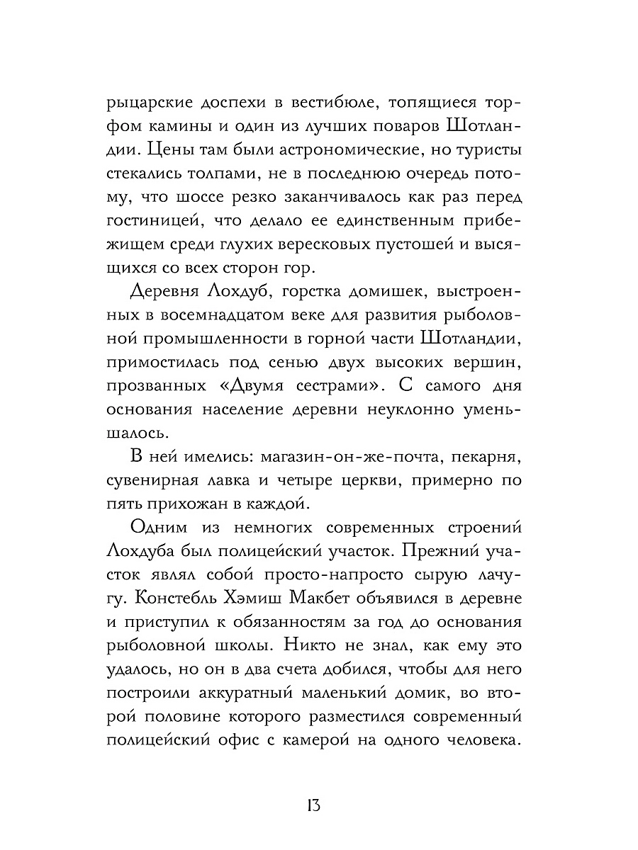 В живописной местности на севере Шотландии начинает свою работу школа рыбной ловли: восемь человек съезжаются в деревушку Лохдуб, чтобы наловить форели и отлично провести время. Однако с самого начала всё идёт не так: отдых омрачают скандалы и сплетни, а несколько дней спустя происходит убийство. За дело берётся деревенский констебль Хэмиш Макбет - как считают местные, редкий остолоп и неисправимый лентяй. Однако внешность обманчива, и проницательный ум констебля Макбета легко справится с расследованием, как бы ни старались все вокруг ему помешать. Серия романов о деревенском констебле Макбете прославилась на весь мир: эти остроумные и обаятельные книги придутся вам по вкусу, если вы любите мисс Марпл, инспектора Барнаби, британские детективы, язвительные комментарии и крепкий чай.| Издательство | Дом историй |