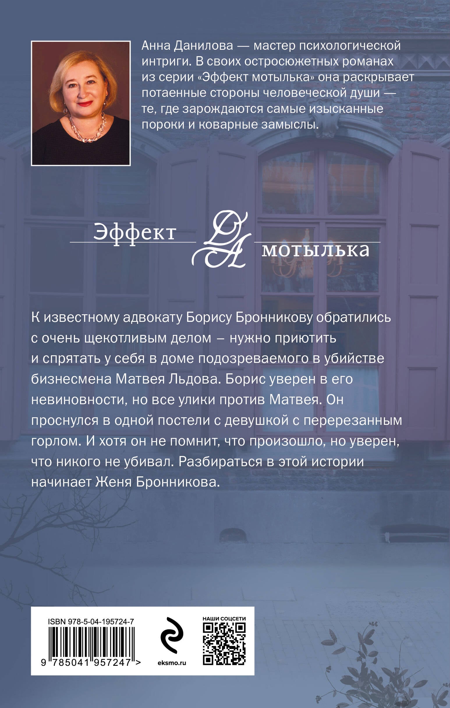К известному адвокату Борису Бронникову обратились с очень щекотливым делом - нужно приютить и спрятать у себя в доме подозреваемого в убийстве бизнесмена Матвея Льдова. Борис уверен в его невиновности, но все улики против Матвея. Он проснулся в одной постели с девушкой с перерезанным горлом. И хотя он не помнит, что произошло, но уверен, что никого не убивал. Разбираться в этой истории начинает Женя Бронникова.| Издательство | ООО "Издательство "Эксмо" |