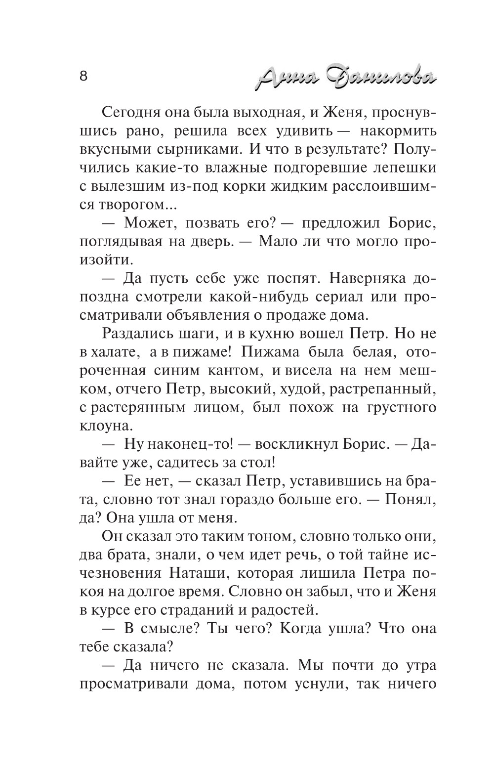 Остросюжетные романы Анны Даниловой - это увлекательные детективы, в которых автор при помощи психологических головоломок и сложных хитросплетений чувств раскрывает глубинные мотивы, толкнувшие героев на преступления. К известному адвокату Борису Бронникову обратились с очень щекотливым делом - нужно приютить и спрятать у себя в доме подозреваемого в убийстве бизнесмена Матвея Льдова. Борис уверен в его невиновности, но все улики против Матвея. Он проснулся в одной постели с девушкой с перерезанным горлом. И хотя он не помнит, что произошло, но уверен, что никого не убивал. Разбираться в этой истории начинает Женя Бронникова.