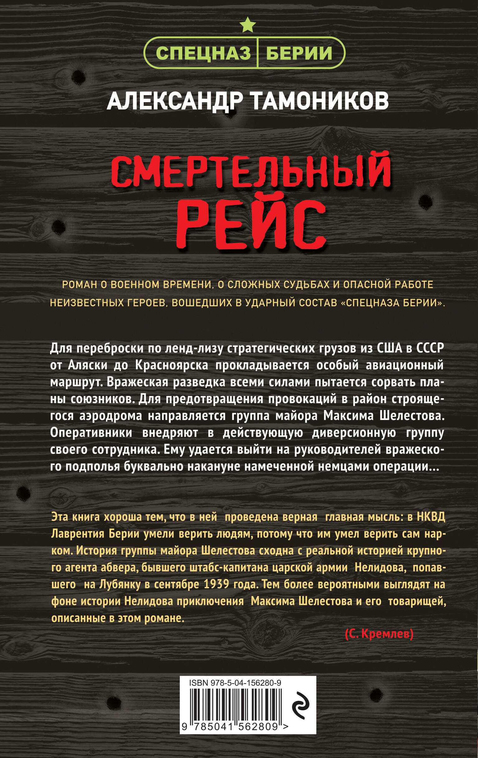 Роман о военном времени, о сложных судьбах и опасной работе неизвестных героев, вошедших в ударный состав «спецназа Берии». Для переброски по ленд-лизу стратегических грузов из США в СССР от Аляски до Красноярска прокладывается особый авиационный маршрут. Вражеская разведка всеми силами пытается сорвать планы союзников. Для предотвращения провокаций в район строящегося аэродрома направляется группа майора Максима Шелестова. Оперативники внедряют в действующую диверсионную группу своего сотрудника. Ему удается выйти на руководителей вражеского подполья буквально накануне намеченной немцами операции… Эта серия хороша тем, что в ней проведена верная главная мысль: в НКВД Лаврентия Берии умели верить людям, потому что им умел верить сам нарком. История группы майора Шелестова сходна с реальной историей крупного агента абвера, бывшего штабс-капитана царской армии Нелидова, попавшего на Лубянку в сентябре 1939 года. Тем более вероятными выглядят на фоне истории Нелидова приключения Максима Шелестова и его товарищей, описанные в этом романе. (С. Кремлев) Общий тираж книг А. Тамоникова - более 10 миллионов экземпляров.| Издательство | ООО "Издательство "Эксмо" |